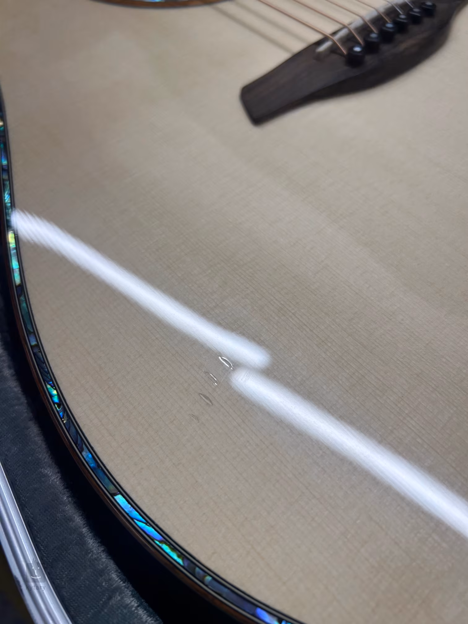 Povrchová poškození laku na přední desce (viz foto). Jinak je nástroj v pořádku a plně funkční.