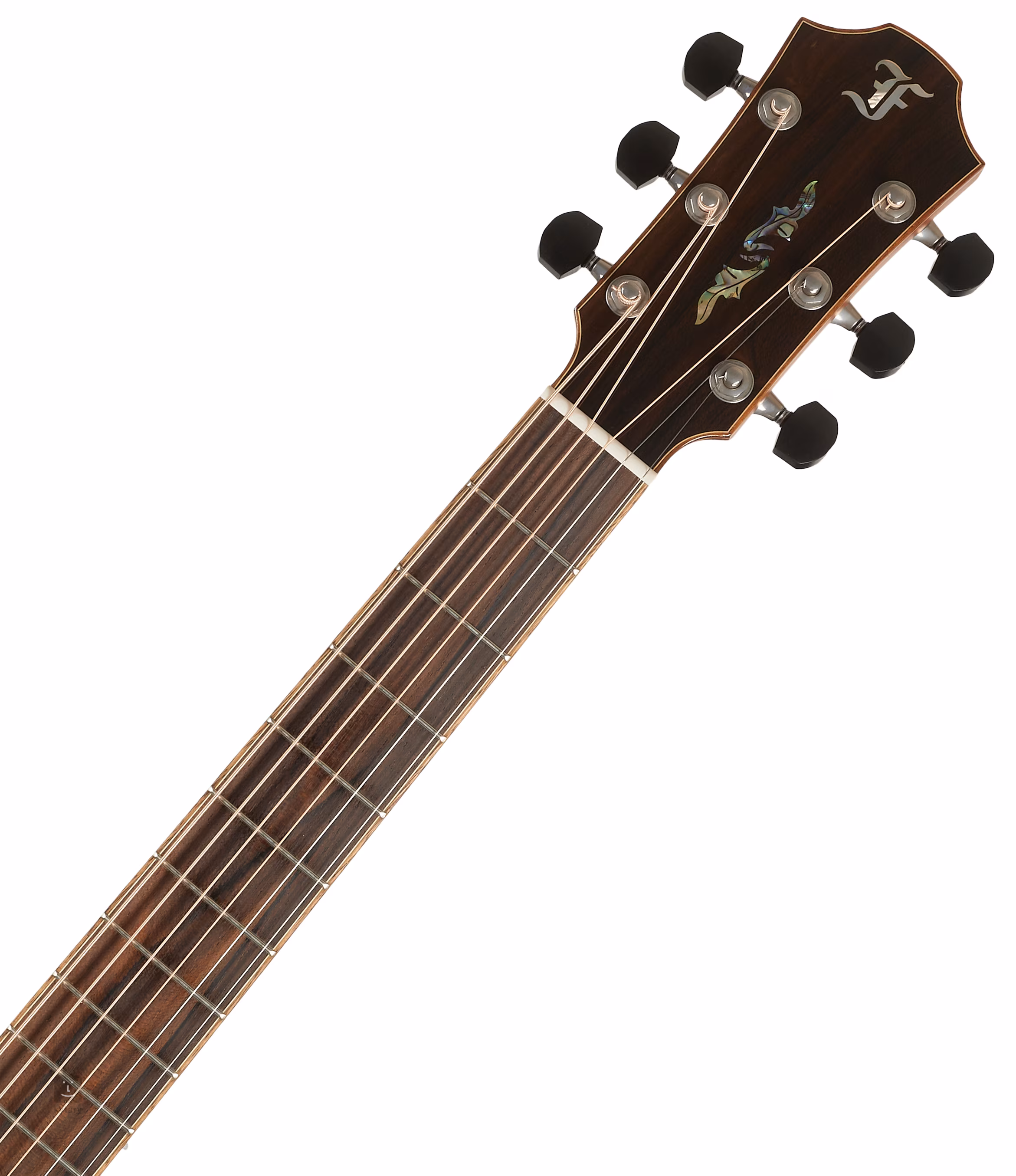 Lemovka těla, hmatníku a hlavice ze dřeva koa doplněná o kontrastní linku, perleťová výložka (Abalone) a prémiová rozeta složená z koa a perleťového prstence (Abalone) vhodně doplňují základní použité materiály a podtrhují exkluzivní vzhled kytar. Transparentní pickguard nechává vyniknout přirozené kresbě dřeva a zároveň neovlivňuje rezonanci přední desky. Plochu hmatníku z exotického dřeva ziricote zdobí dekorativní perleťové lístky. Špičkové mechaniky Gotoh 510 v odstínu stříbrné patiny s leštěnými ebenovými kolíčky a převodovým poměrem 1:21 jsou zárukou stabilního ladění.