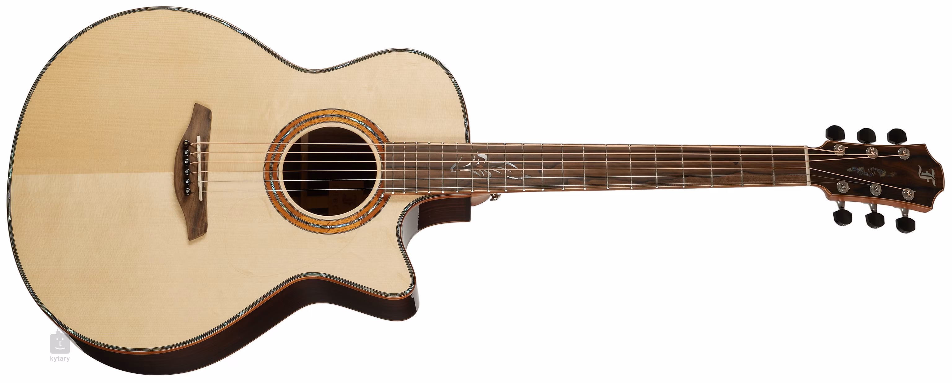 Hmatník z exkluzivního středoamerického dřeva ziricote s výraznou kresbou zdobí perleťové vykládání ve tvaru lístku, obdobný přírodní vzor ze zeleného abalone je na hlavě kytary. Transparentní pickguard nechává vyniknout přirozené kresbě dřeva a zároveň neovlivňuje rezonanci přední desky. Stabilní ladění zaručují špičkové mechaniky Gotoh 510 v odstínu stříbrné patiny s leštěnými ebenovými kolíčky a převodovým poměrem 1:21. Luxusní vzhled kytary podtrhuje kobylka a plátek na hlavě ze dřeva ziricote, lemovka těla, hmatníku a hlavy a dekorace koncového bloku z havajského koa, perleťová výložka přední desky (abalone) a prémiová prstencová rozeta z havajského koa a perleti (abalone).