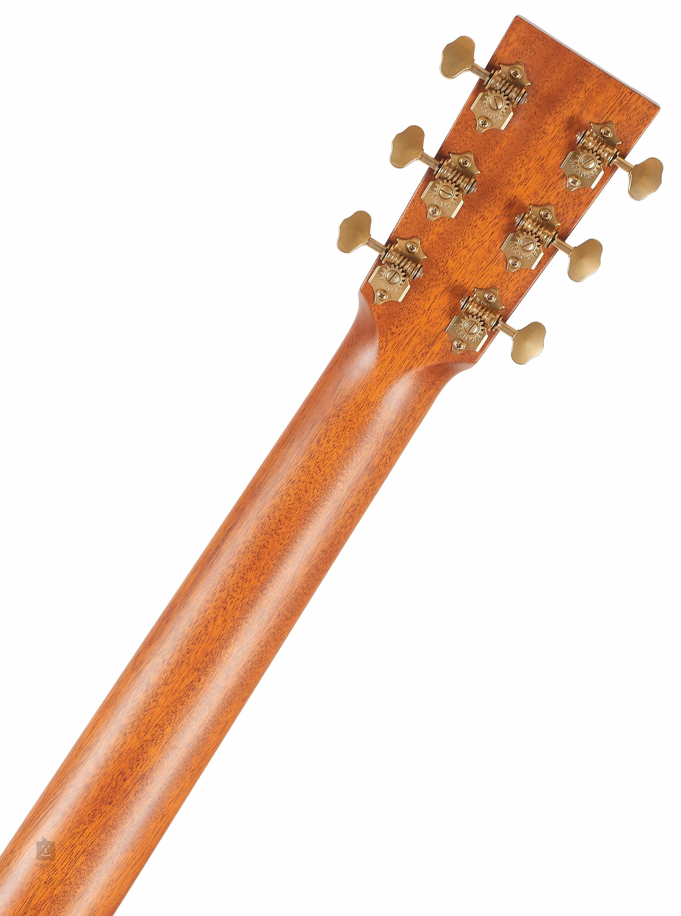 Orientaci na ebenovém hmatníku usnadňují kvadratické polohové značky z bílé perleti. Stabilní ladění zaručují špičkové mechaniky Gotoh SE700 v odstínu zlaté patiny s převodovým poměrem 1:15. Atraktivní vzhled kytary podtrhuje řada stylový ozdobných detailů v podobě vykládání přední desky motivem rybí kosti, dvojité prstencové rozety ze zeleného abalone a lemování těla, hlavy a hmatníku z umělé slonoviny.