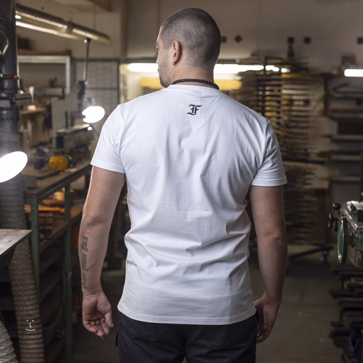 Tričko White T-shirt print bracing značky Furch je zhotoveno ze stoprocentní bavlny. Tričko zdobí potisk žeber kytary a trademark “6 Strings” grafika. Minimalistický unisex design nabízí spojení jednoduchosti, stylu a pohodlí, takže vám tričko dobře sekne při práci i na koncertě. Díky prémiové tkanině s vysokou hustotou vám navíc tričko vydrží řadu let.