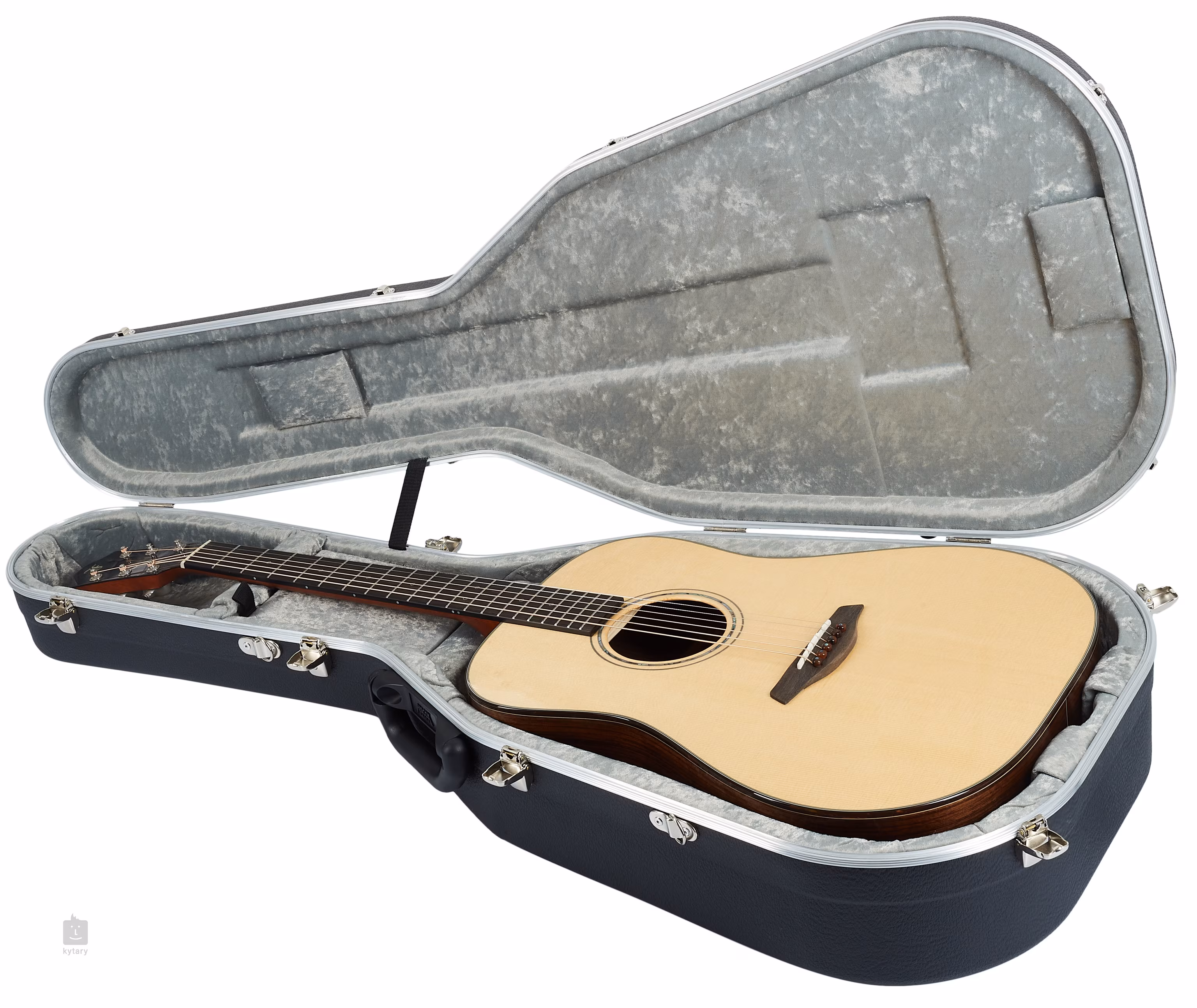 Orientaci na ebenovém hmatníku usnadňují elegantní čelní kruhové poziční značky s tenkou obrysovou linkou z bílé perleti a boční perleťové bodové značky. Transparentní pickguard nechává vyniknout přirozené kresbě dřeva a zároveň neovlivňuje rezonanci přední desky. Stabilní ladění zaručují špičkové mechaniky Gotoh 510 ve stříbrné patině s leštěnými ebenovými kolíčky a vysoce jemným převodovým poměrem 1:21. Pěkné zpracování podtrhují jemné detaily v podobě lemování těla z umělé želvoviny a dvojité prstencové rozety s vykládáním ze zeleného abalonu s černobílou linkou.