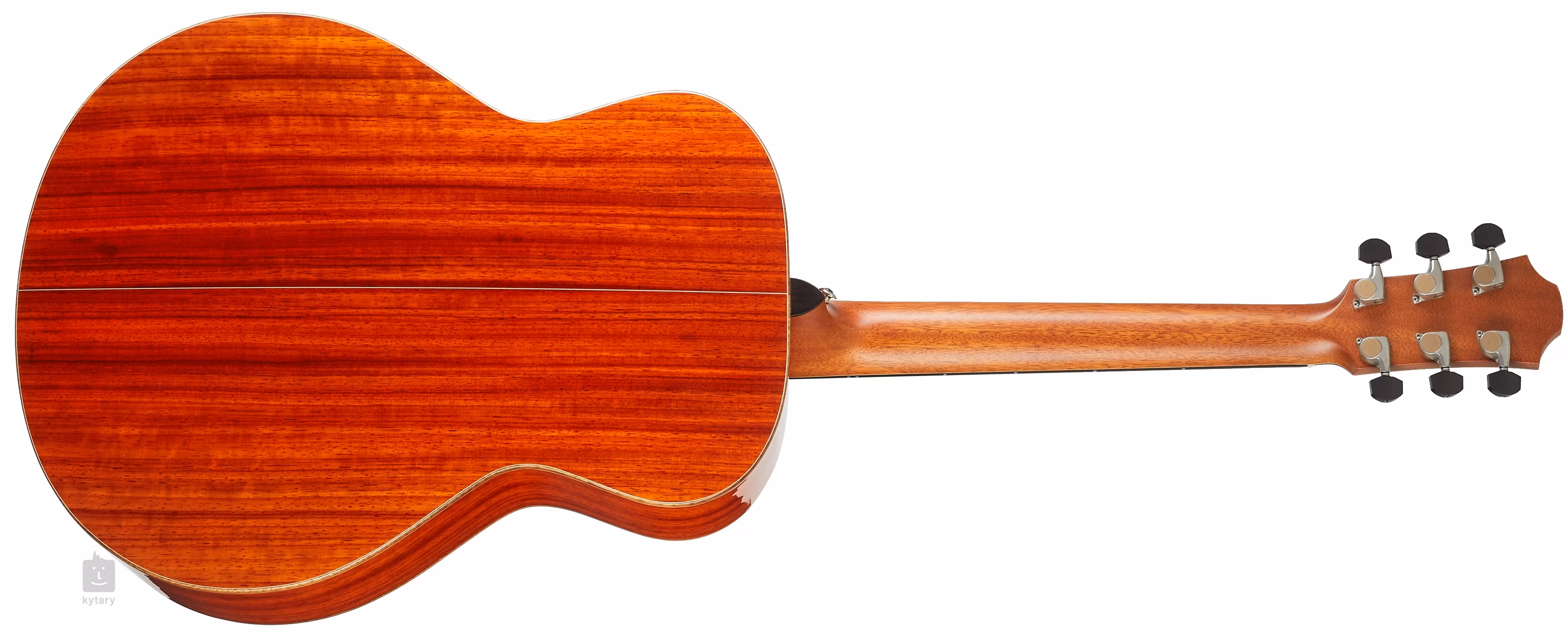 Orientaci na ebenovém hmatníku usnadňují elegantní čelní kruhové poziční značky s tenkou obrysovou linkou z bílé perleti a boční perleťové bodové značky. Transparentní pickguard nechává vyniknout přirozené kresbě dřeva a zároveň neovlivňuje rezonanci přední desky. Stabilní ladění zaručují špičkové mechaniky Gotoh 510 ve stříbrné patině s leštěnými ebenovými kolíčky a vysoce jemným převodovým poměrem 1:21.
