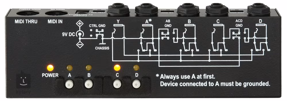 Jeho ovládání samozřejmě probíhá pomocí MIDI protokolu, je však možné použít i tlačítka umístěná na horní straně zařízení. Elektronika je vymyšlena tak, aby byla eliminována možnost vzniku zemnících smyček.