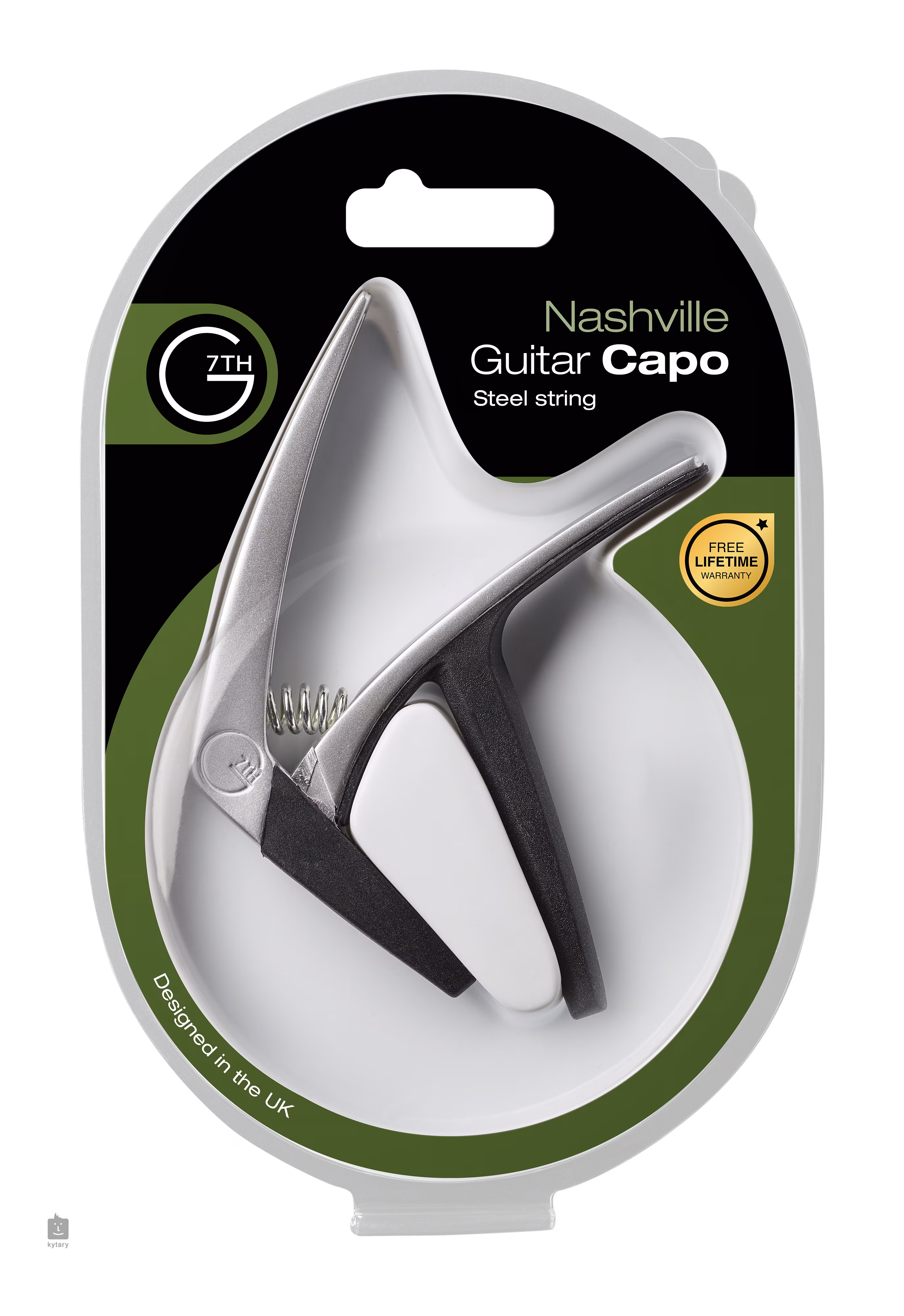 Nashville od firmy G7th je praktický lehký kapodastr opatřený pružinovým mechanismem pro snadné upnutí/uvolnění na krk kytary. Části přicházející do styku s krkem kytary jsou opatřeny silikonovou pogumovanou vložkou a zabraňují tak poškození.