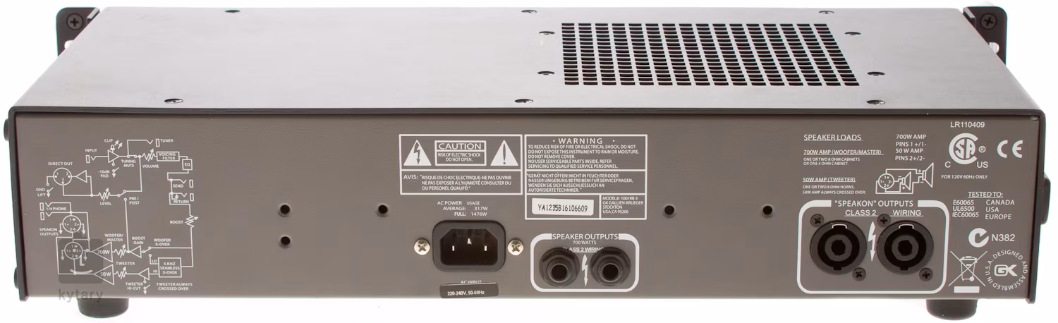 Konkrétně tento model obsahuje koncový zesilovač, který dokáže do zátěže 4 Ohmů poslat až 700 Wattů výkonu a dalšími 50 Wattů umí odděleně živit hornu v BiAmp zapojení.