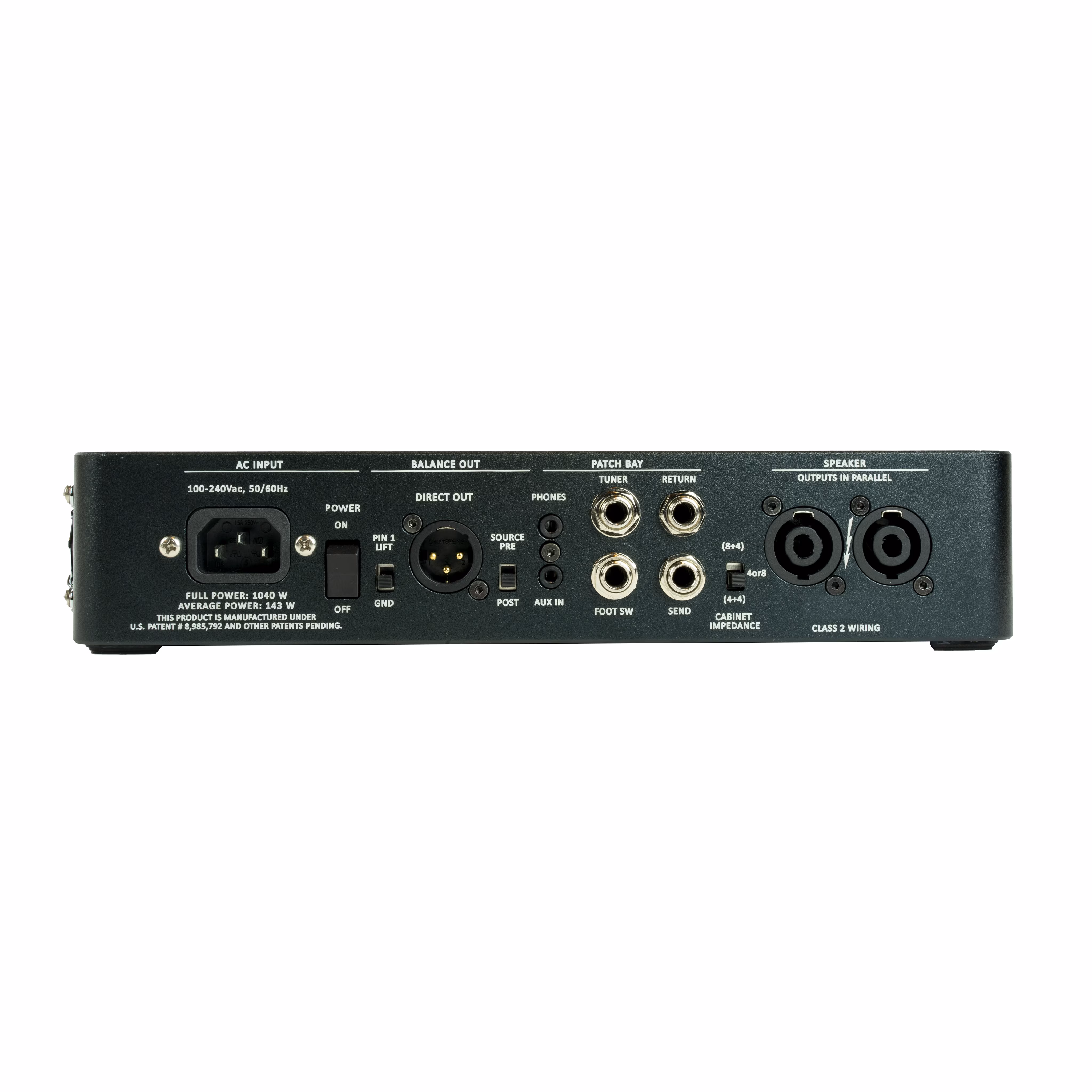 Legacy 1200 spolu se zesilovačem třídy D nabízí maximální výkon až 1200W. Přední ovládácí panel je tvořen ovladačem hlasitosti a zkreslení, přepínačem Overdrive či čtyřpásmovým ekvalizérem pro úpravu zvukového signálu. Dále zde naleznete spínače zvukových filtrů Bump/Contour/Presence pro co nejflexibilnější využití zesilovače. Zadní panel potom nabízí třípolohový přepínač impedance, dvoupolohový přepínač Pre/Post zdroje, Speakon konektory pro připojení reproboxů, efektovou smyčku, vstup pro footswitch a ladičku, nebo výstup pro sluchátka či vstup pro hudební zařízení. Samozřejmostí je XLR výstup pro DI Box s přepínačem odzemnění Lift/Ground. Zesilovač disponuje dvěma robustními madly pro pohodlný transport a snadnou manipulaci na pódiu.