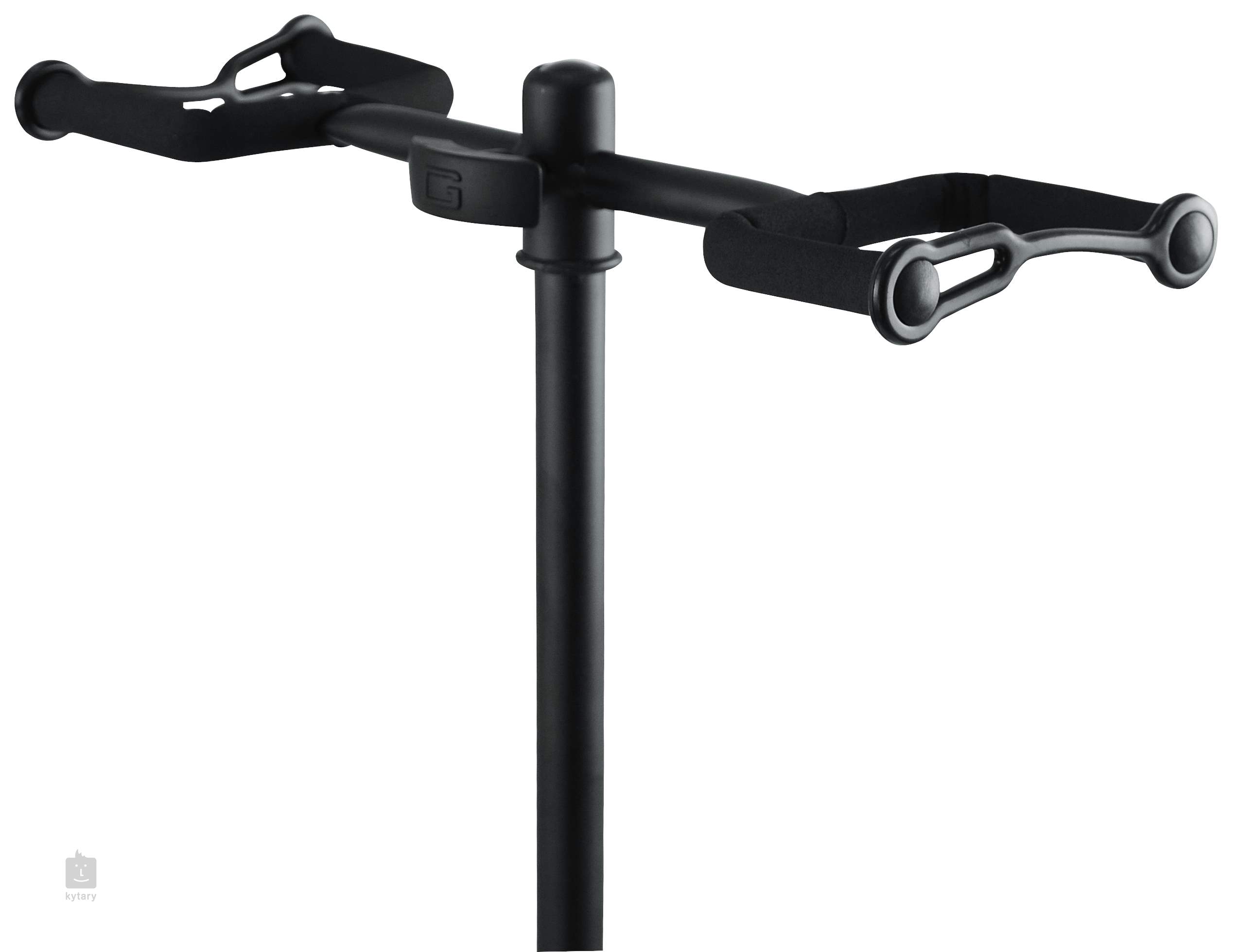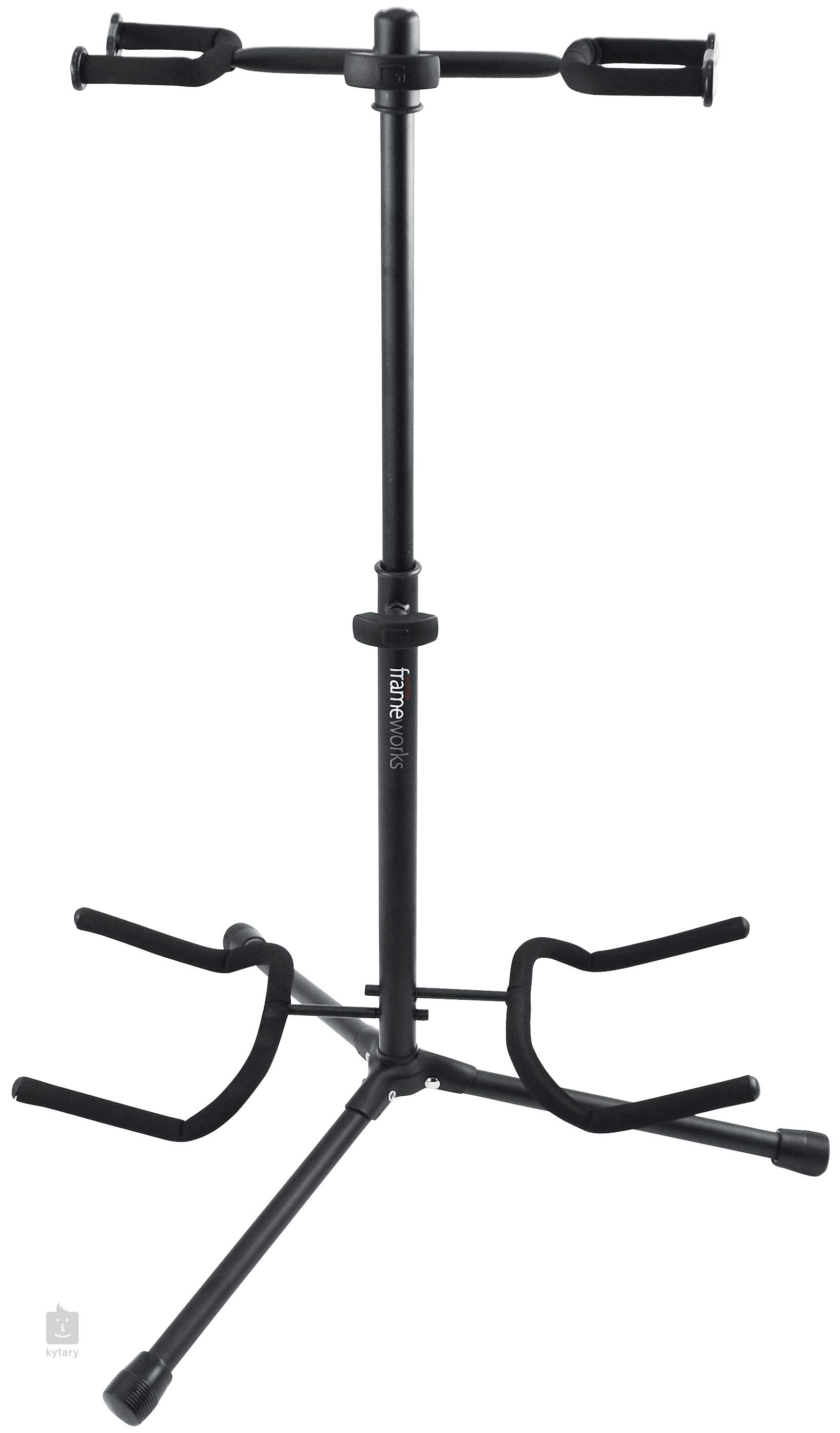 Tento dvojitý kytarový stojan značky Gator Frameworks vychází z klasické trojnožkové konstrukce a je vhodný pro skladování dvou akustických či elektrických kytar a baskytar. Je vysoce stabilní, takže díky němu budou vaše nástroje vždy po ruce a v bezpečí. Obě hlavy stojanu disponují ochranným páskem, který zabraňuje převrácení kytar a jejich případnému poškození. Všechny součástky, které se dotýkají nástrojů, jsou pogumované, aby nehrozilo poškrábání.
