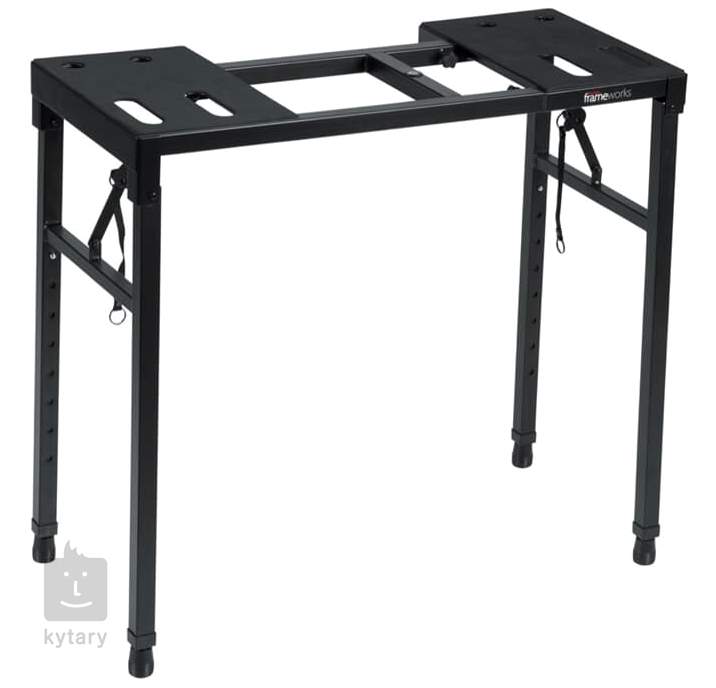 Robustní skládací stojan pro klávesové nástroje, který disponuje nastavitelnou výškou i délkou. Šířka nosné plochy je pevná.