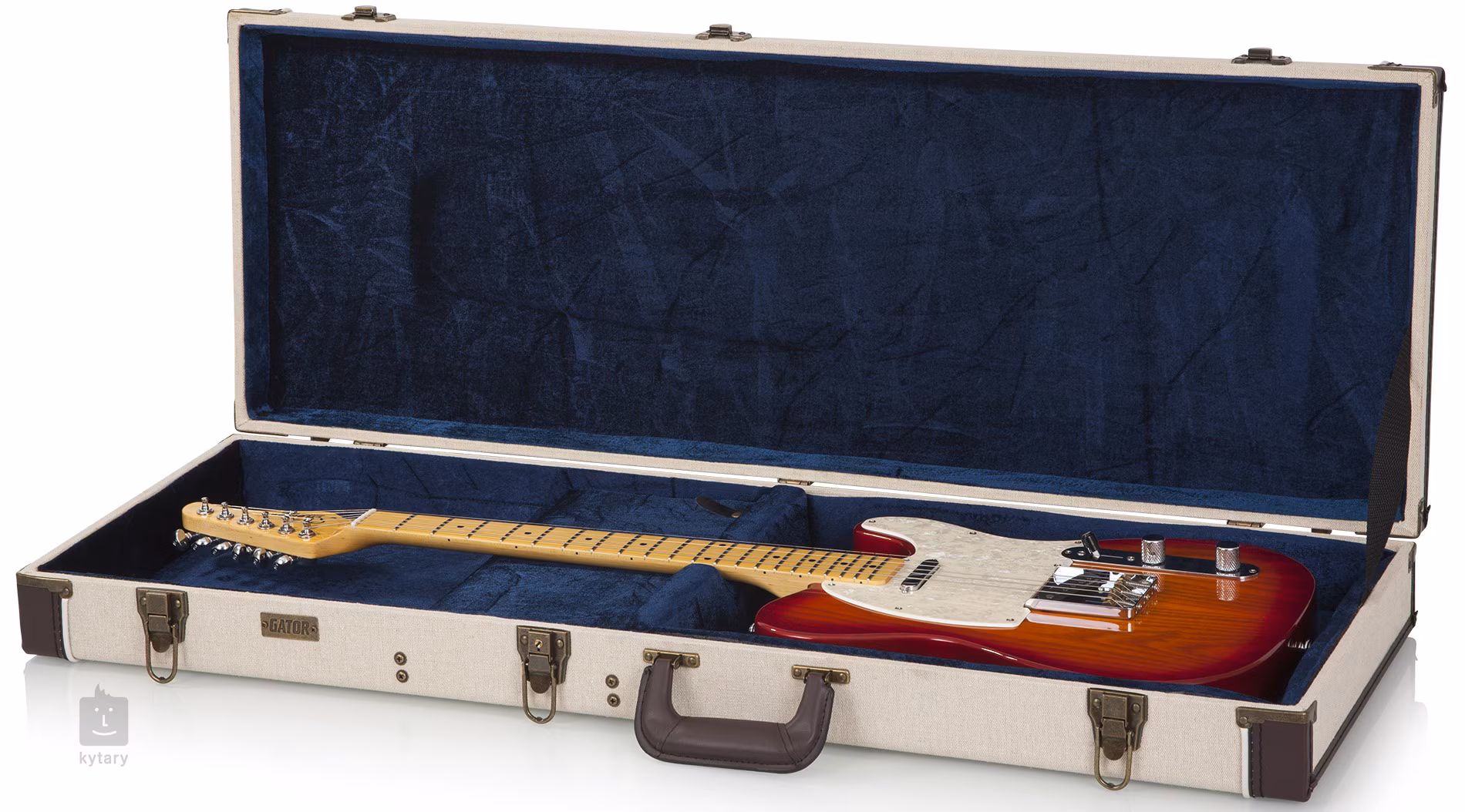 Uvnitř na vás čeká luxusní královsky modrý samet, který kytaru bezpečně obejme a chrání ji před otřesy i poškrábáním. K dispozici je také prostorný úložný box s víkem, ideální pro uschování trsátek, strun, kapodastru nebo jiného příslušenství.