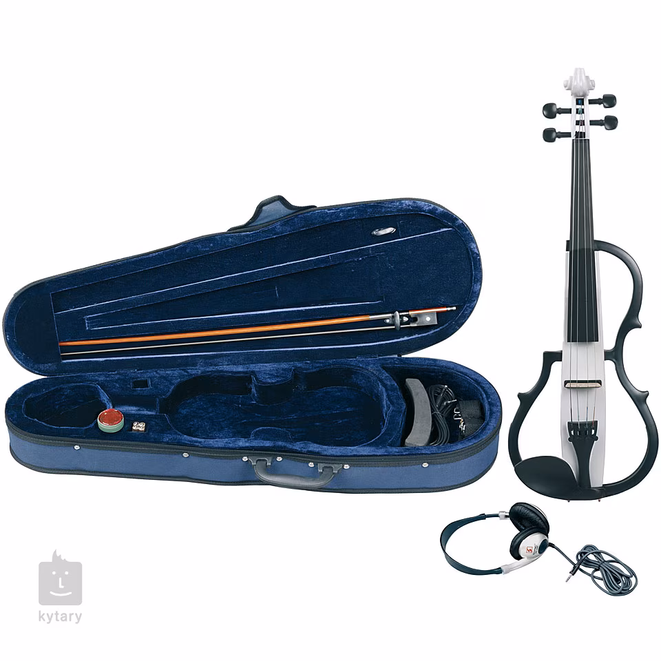 Smyčec, kalafuna, sluchátka, podbradek, ramenní opěrka, kufr