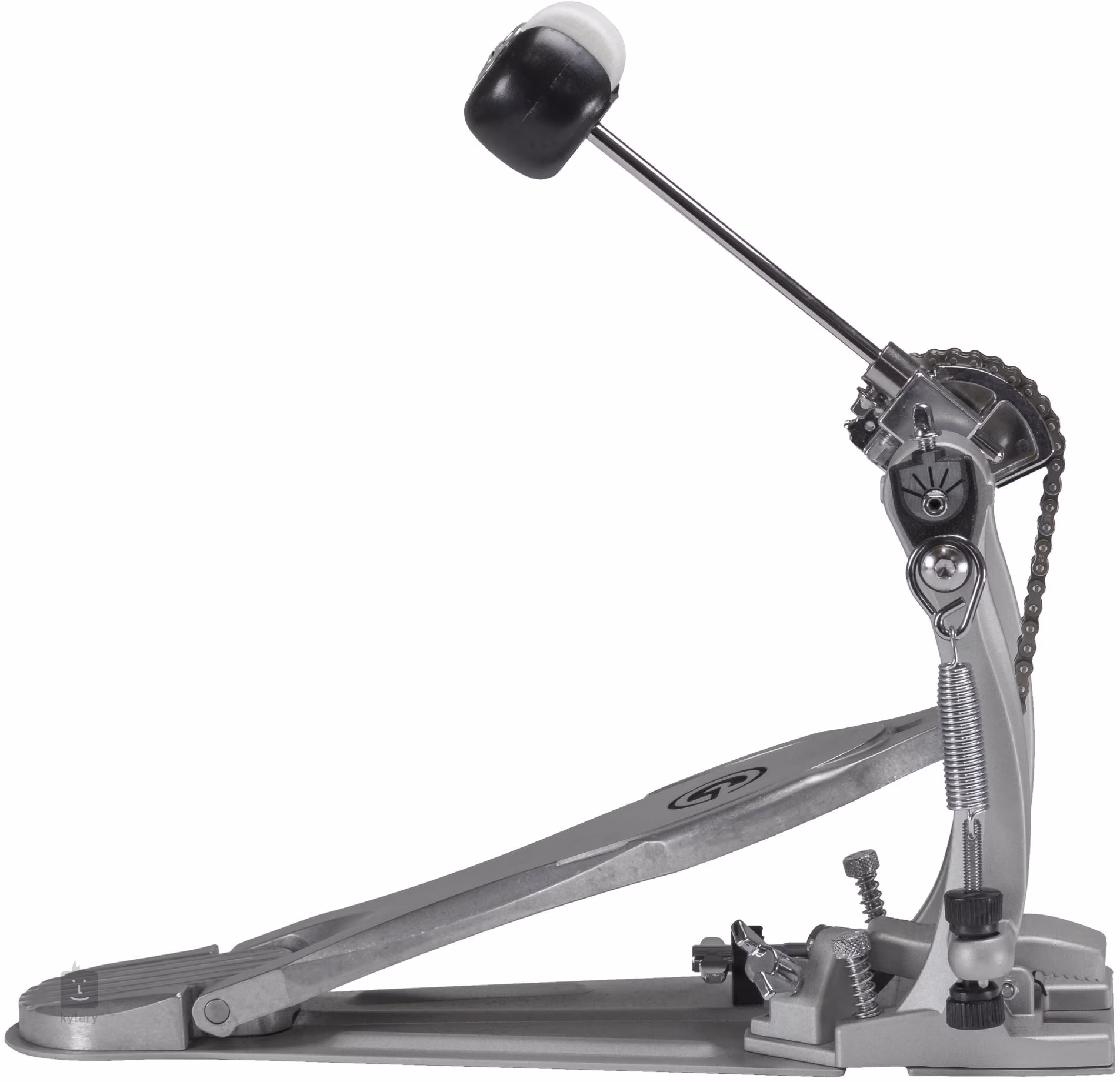 Srdcem pedálu je dual chain cam drive, tedy mechanismus s dvojitým řetězem, který nabízí vyšší stabilitu a efektivnější přenos energie než klasické jednoduché řešení. Výsledkem je rychlá odezva, silný úder a přesná kontrola nad dynamikou, což oceníte jak při razantní rockové hře, tak při technicky náročnějších pasážích. Stabilní a elegantně tvarovaný rám zároveň přispívá k celkové pevnosti a dlouhé životnosti pedálu.