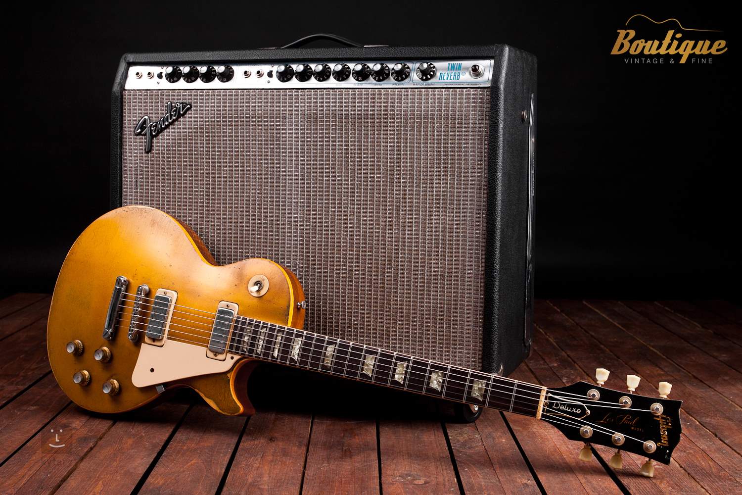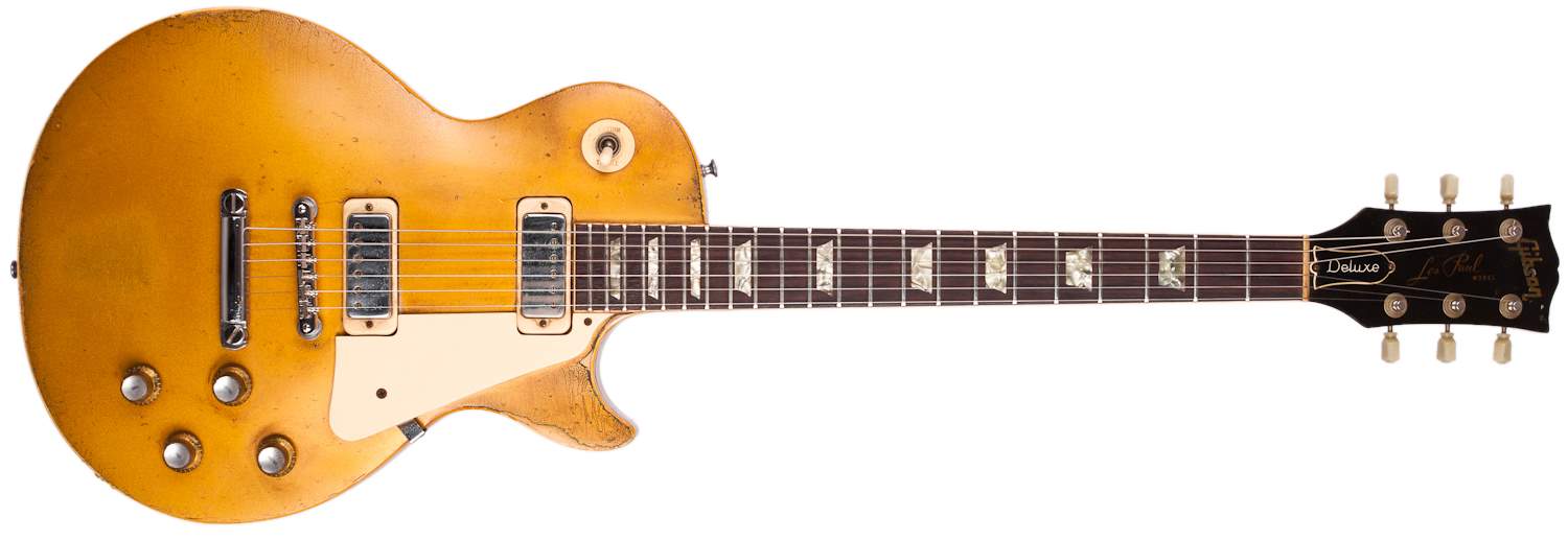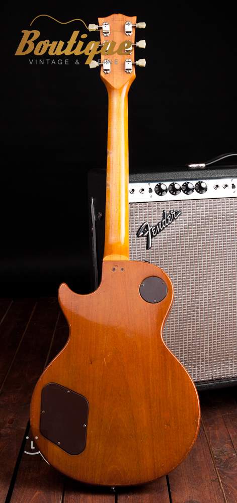 Výjimkou není ani tato kytara, která si vás ihned získá výraznou patinou. Na tuto kytaru se opravdu hrálo a původní majitelé v ní nechali nesmazatelný otisk. Díky tomu vám do ruky padne jak ulitá. Mahagonové tělo je opatřeno javorovým topem ve zlatém provedení, krk je složen ze tří kusů javorového dřeva. Kytara je ve zcela původním stavu s originálními snímači i elektronikou kromě novější ABR1 kobylky a zestařených knoflíků na potenciometrech (reflector knobs).