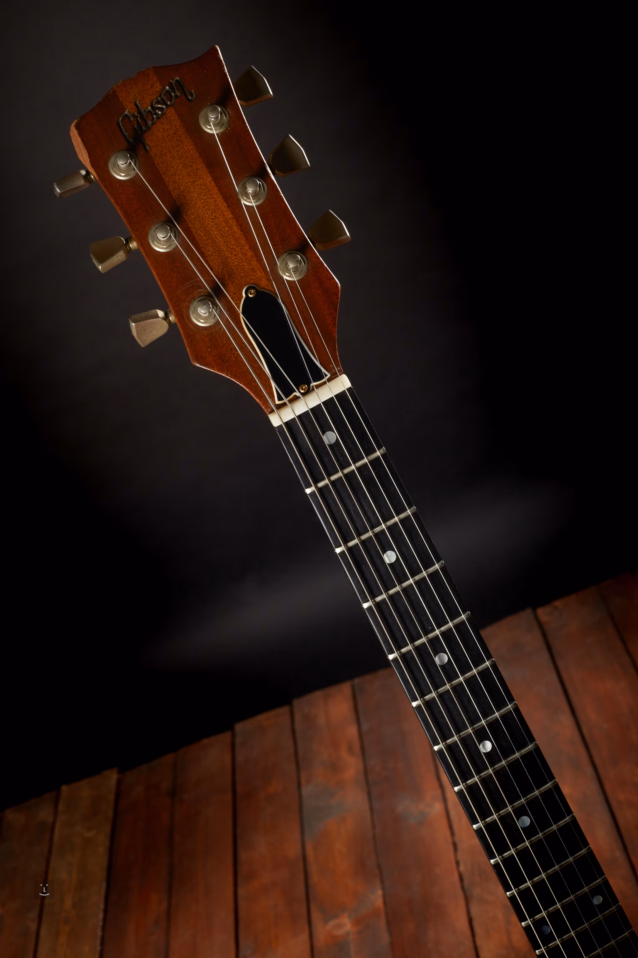 Na těle jsou drobné oděrky odpovídající stáří, levý horní roh hlavice je odštípnutý. Na hardwaru je mírná koroze a patina. Nástroj je v perfektním, 100 % funčním stavu, seřízený a připravený ke hraní.