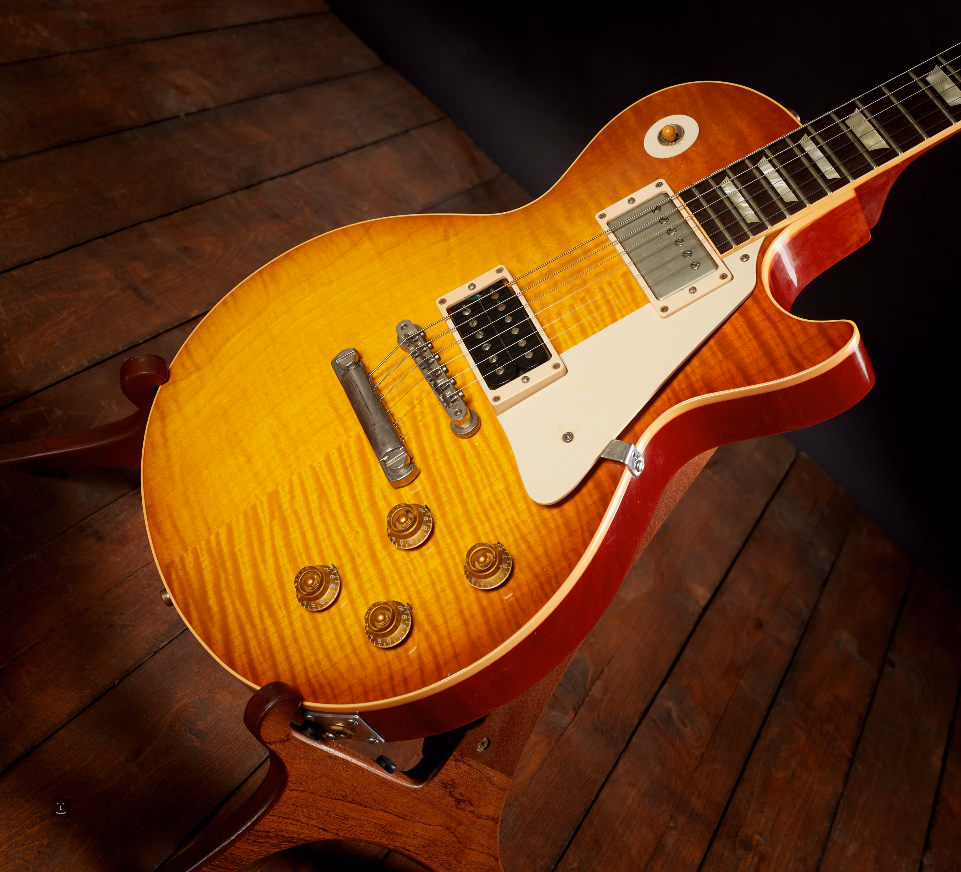 Tento ´59 Les Paul má samozřejmě Jimmyho specifikace, jde především o otočenou fázi jeho speciálních snímačů (Jimmy Page Custom Burst Buckers), jeden z potenciometrů je pak vybaven funkcí push/pull, která rozepíná lead snímač.