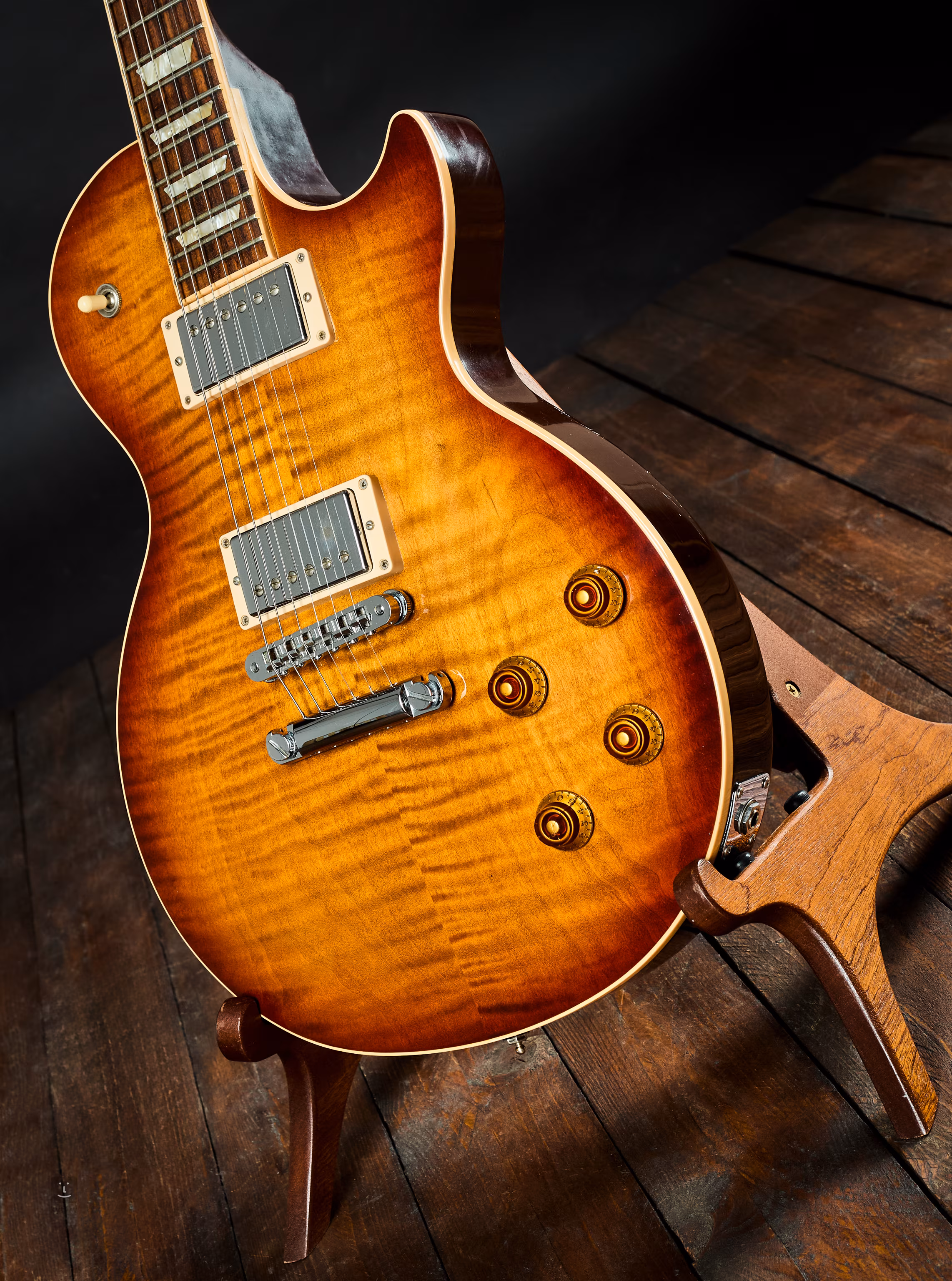 Mahagonové tělo má “Modern” Weight Relieved komorování, na topu AAAA Figure javor. Snímače Gibson Burstbucker mají možnost rozepínání a navíc nabízí elektronika zapojení v protifázi a true bypass, to vše díky push-pull potenciometrům.