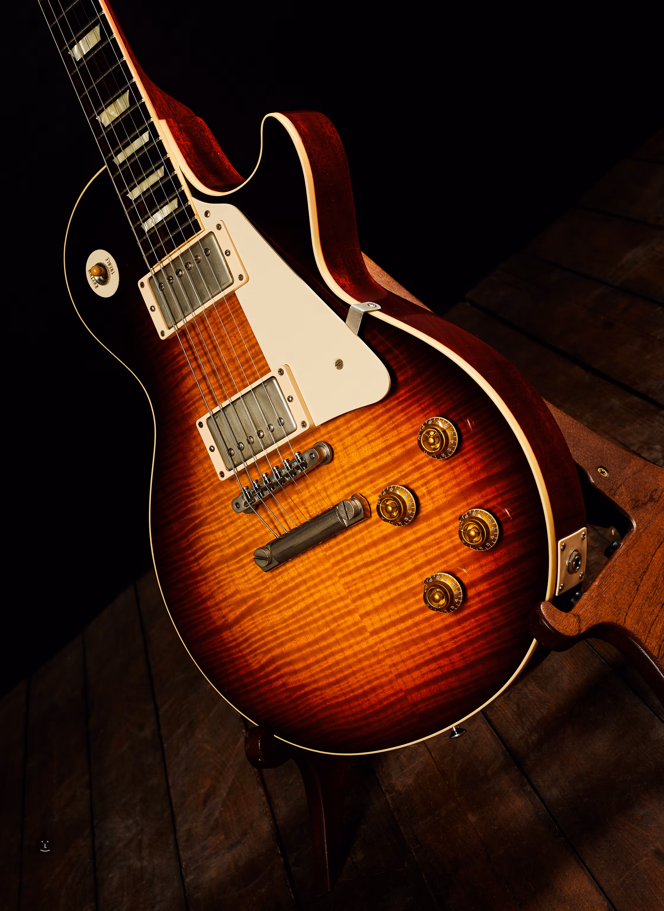 Gibson Les Paul bez kompromisů. Jde prakticky o nový nástroj, byl hraný minimálně, jde také o sběratelskou záležitost. Původní kufr a certifikát jsou součástí.