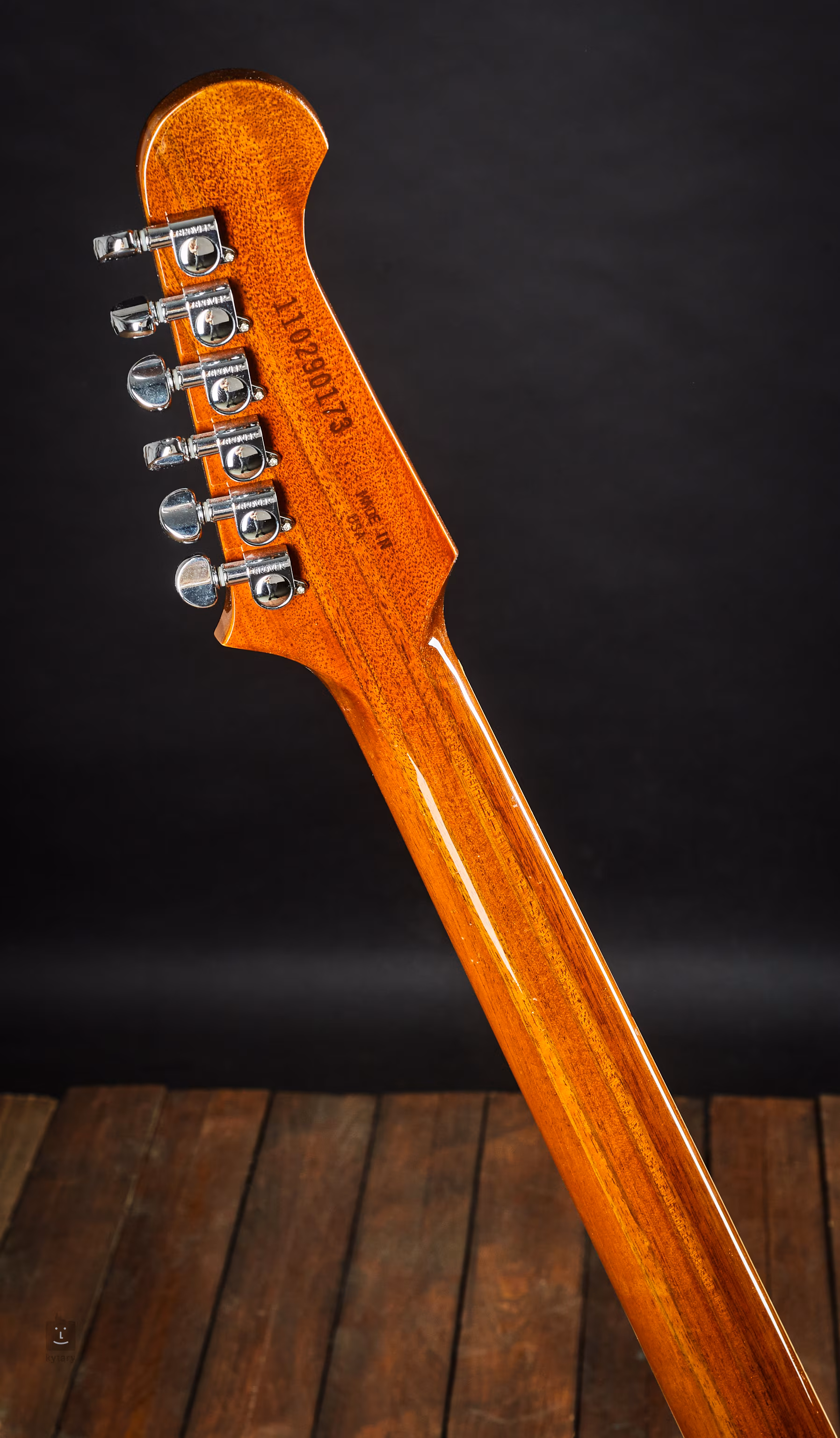 Nástroj je velmi málo používaný. Na spodním rohu je odštěpek v laku, jinak je kytara v perfektním stavu. Vše je původní.