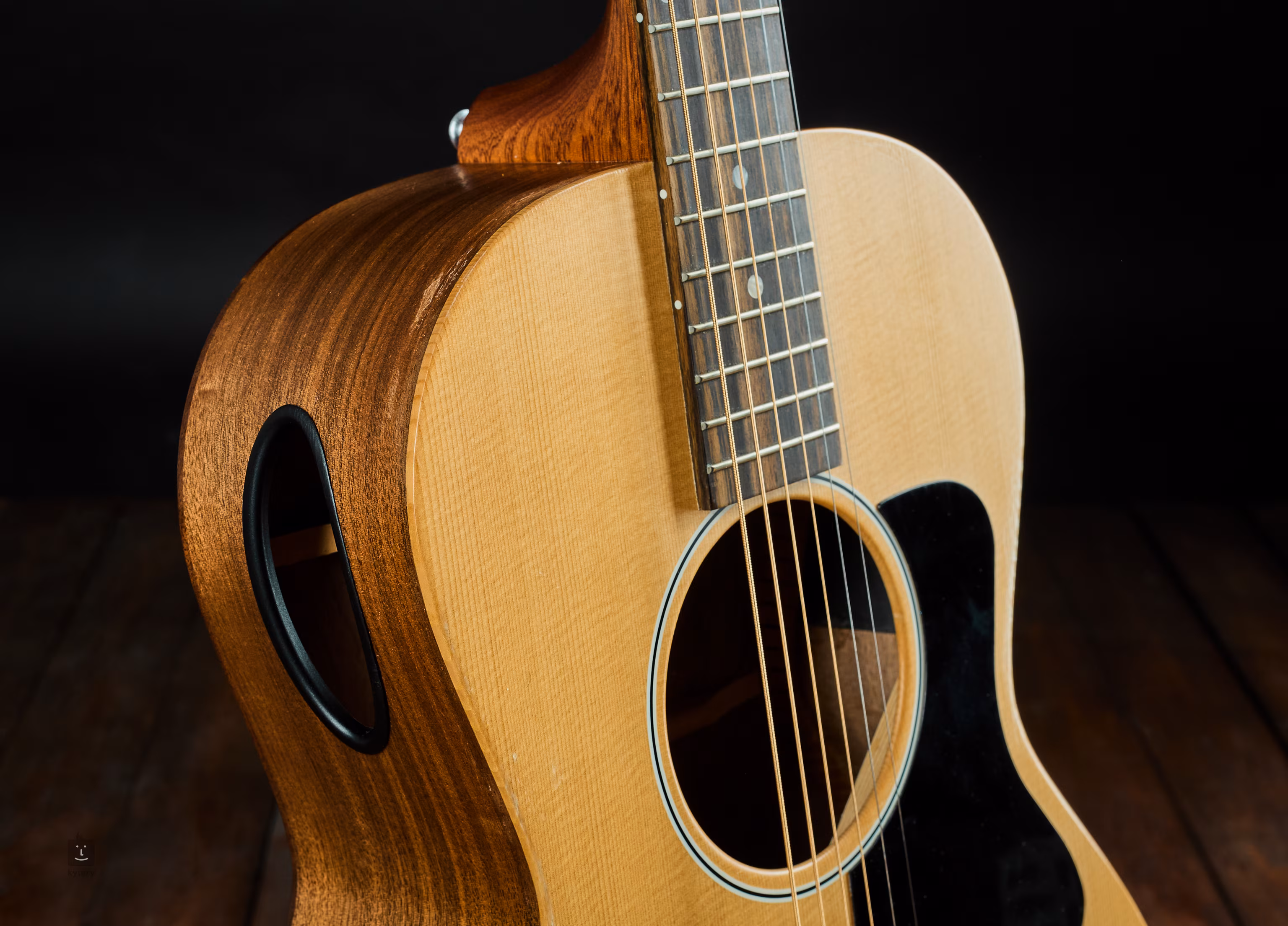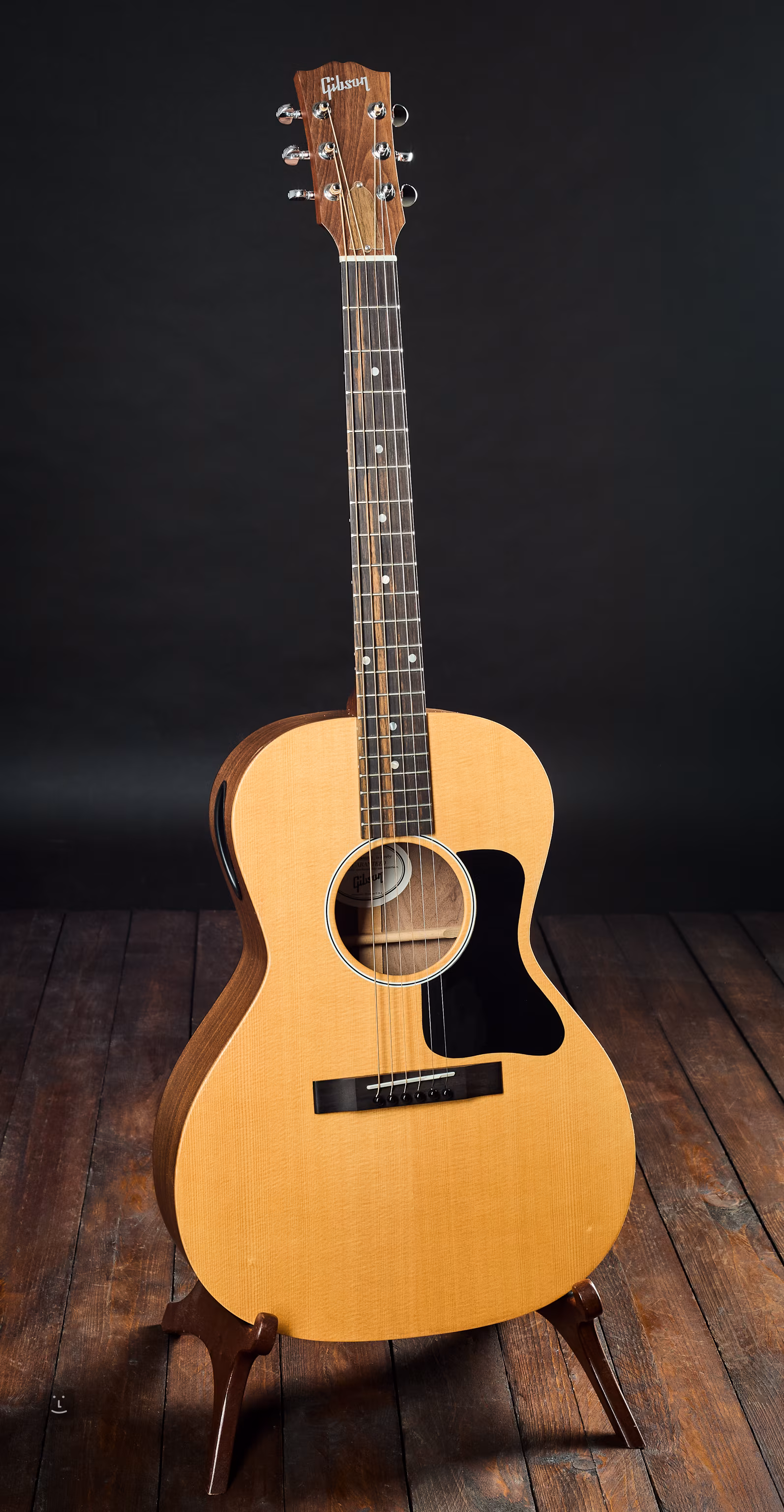 Parlorka s velmi kompaktními rozměry a netradičním otvorem na vrchním lubu, nedávno delistovaný model z nabídky USA Gibsonu. Takřka skoro nový nástroj, pouze vyzkoušený.