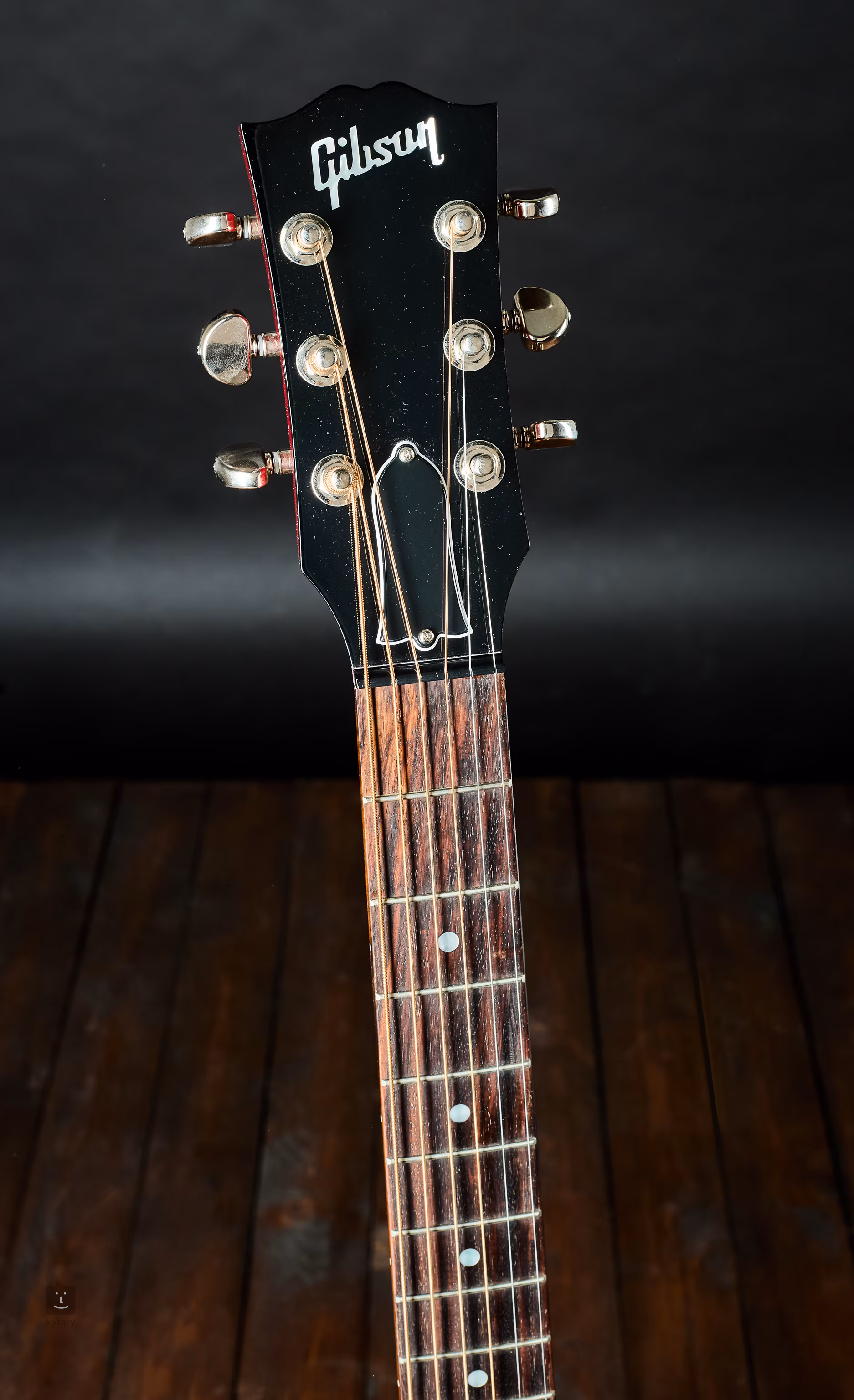 Akustické kytary Round Shoulder Dreadnought z řady J-45 patří mezi nejznámější a nejpopulárnější nástroje z produkce americké firmy Gibson. První kytary s tímto označením byly veřejnosti představeny už v roce 1942. Samotným výrobcem jsou od počátku označovány jako „workhorse“, tj. maximálně praktické nástroje bez výrazných kosmetických doplňků vhodné pro každodenní koncertování. Přední deska kytary J-45 Standard Antique Natural je zhotovena ze smrku Sitka, zadní deska a luby jsou vyrobeny z mahagonu. Rezonanci topu podporuje ručně snížené žebrování typu X. K mahagonovému krku s profilem “Slim Taper” je přilepen hmatník z indického palisandru osazený dvaceti pražci velikosti Standard. Orientaci na hmatníku usnadňují perleťové poziční tečky (Mother of Pearl). Struny jsou uchyceny v ladicích mechanikách Grover Rotomatic a palisandrové kobylce. Stylové zpracování podtrhuje tenká vrstva lesklého laku z nitrocelulózy, oboustranná obvodová lemovka těla a teardrop pickguard z imitace želvoviny.
