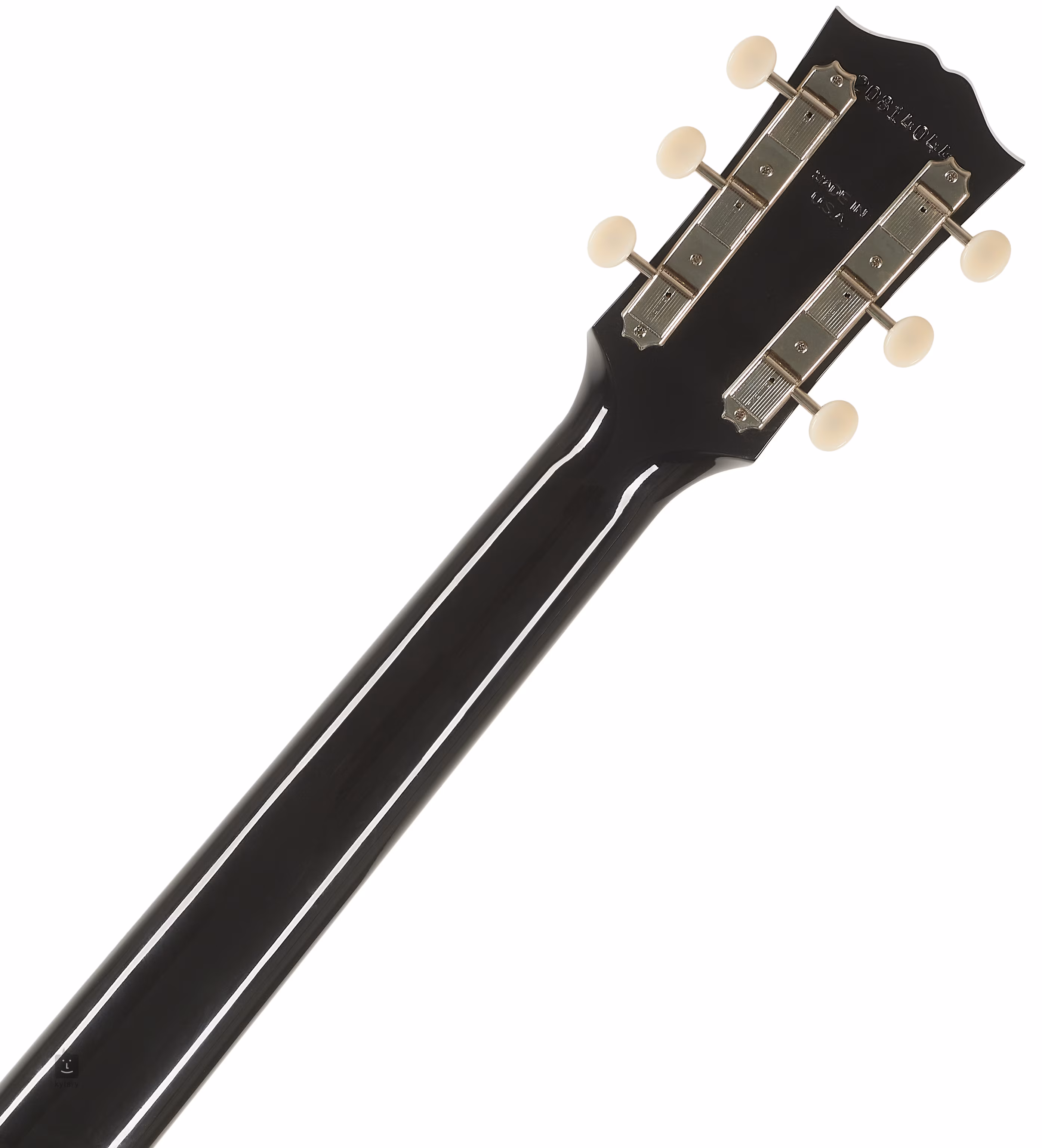 Struny jsou přes nultý pražec z kosti a nastavitelné sedlo z materiálu TusQ uchyceny v ladících mechanikách Grover a palisandrové kobylce. Stylové zpracování podtrhuje vícevrstvá oboustranná obvodová lemovka s jemným nádechem patiny a bílý pickguard v dobovém 60´s designu.