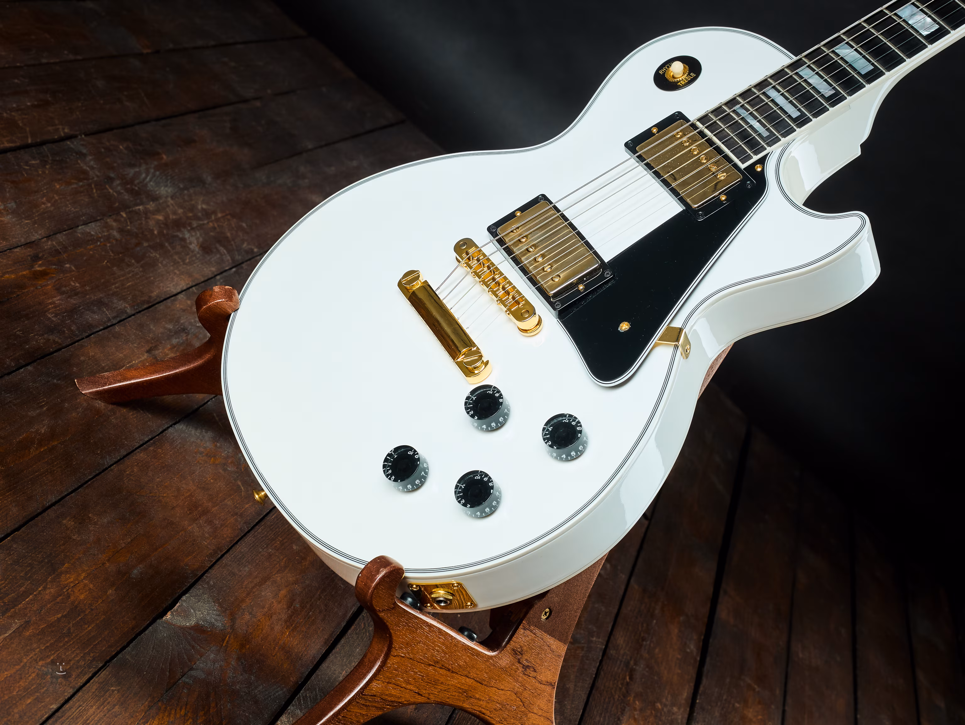 Les Paul Gibson Custom ve sněhově bílé barvě Alpine White. Vynikající, téměř nový nástroj z roku 2025.