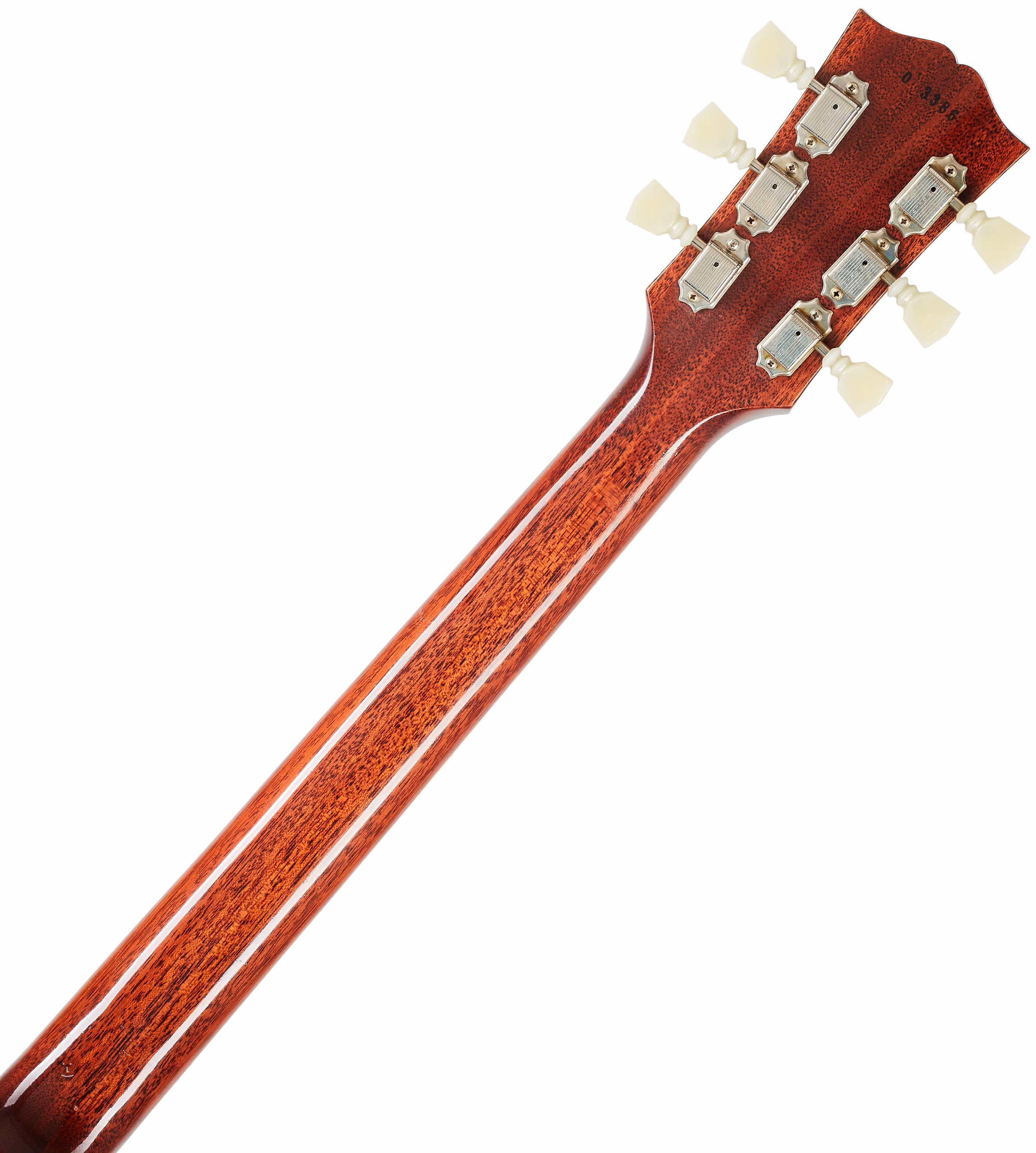 Jednodílné mahagonové tělo kytary zdobí dvoudílný top z figurovaného javoru a efektní barevná úprava Wide Tomato Burst. Murphy Lab Ultra Light Aged finiš spolu spolu s decentně “postrařeným” finišem hardware poskytují kytaře vzhled a feel nástroje, který většinu svého života hověl v bezpečí kufru a tak i po letech vypadá k světu. K mahagonovému krku s “60s SlimTaper” profilem je přilepen palisandrový hmatník osazený dvaadvaceti pražci (Historic Medium-Jumbo). Orientaci po ploše hmatníku usnadňují polohové bloky (Aged Cellulose Nitrate Trapezoid). O zvuk kytary se starají dva humbuckery Custombucker Alnico 3 bez voskování (Unpotted). Struny jsou uchyceny v ladících mechanikách Kluson Single Line a přes No-Wire ABR-1 kobylku ve struníku.