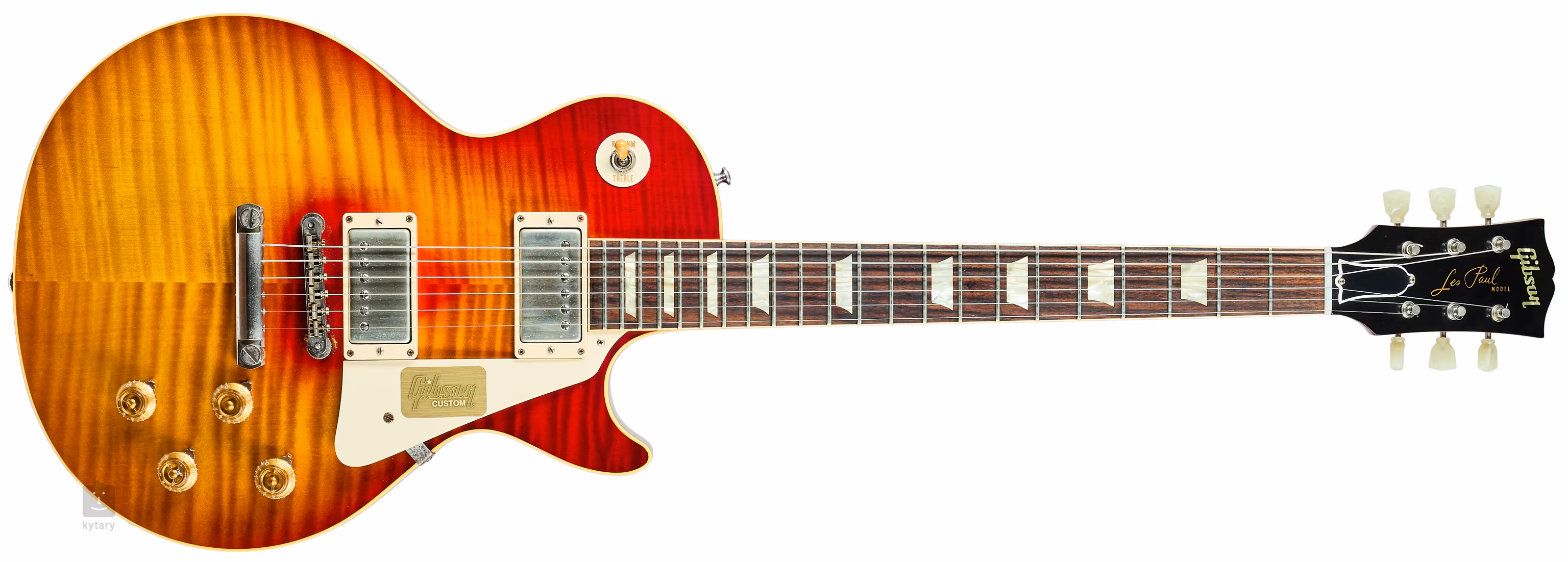 Unikátní vzhled Reverse Burst - obrácené lakování na topu nástroje, které utváří domělé srdce pod kobylkou - je zde spojený s typicky dokonalým provedením modelu 59 s výběrovým fládrovaným javorem na topu, pohodlným 59 krkem a úžasným zvukem PAF Custom Bucker replik původních snímačů.