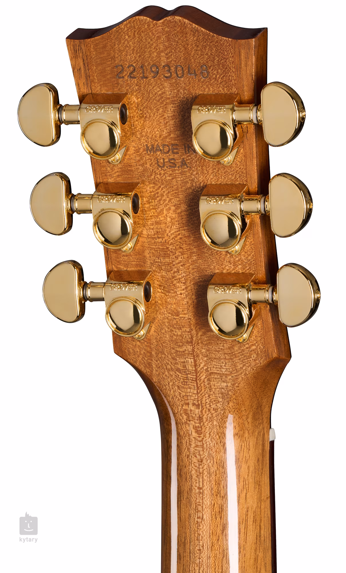 Přední deska elektroakustické kytary J-45 Standard Rosewood Rosewood Burst je zhotovena ze smrku Sitka, zadní deska a luby jsou vyrobeny z palisandru. Rezonanci topu podporuje ručně snížené žebrování typu X, tělo kryje lesklý lak z nitrocelulózy. K mahagonovému krku je přilepen hmatník z indického palisandru osazený dvaceti pražci velikosti Standard. Orientaci na hmatníku usnadňují perleťové poziční tečky.