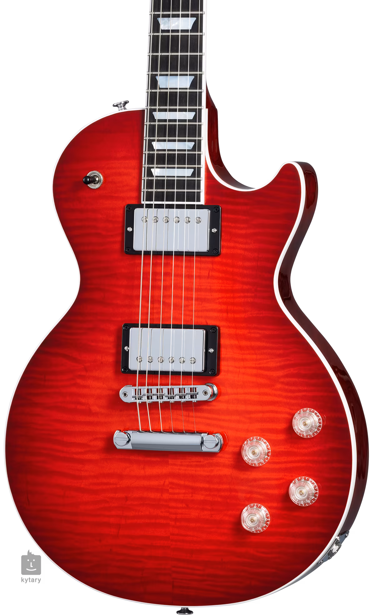 Mahagonové tělo kytary Les Paul Modern Figured Cherry Burst zdobí efektní top z figurovaného javoru kvality AAA a barevná úprava Cherry Burst. Díky rezonančním komorám těla (úpravě Ultra Modern Weight Relief) je nástroj podstatně lehčí než klasické těžké LP modely, přitom si uchovává typický Les Paul zvuk a feel. Tenká povrchová úprava v podobě laku z nitrocelulózy umožňuje dřevu kytary dýchat a zlepšuje zvukové kvality nástroje.