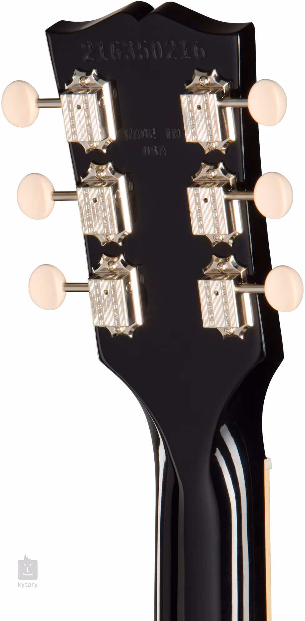 O zvuk nástroje se starají dva snímače P-90, které poskytují kytaře široké spektrum tónů s charakteristickým Gibson otiskem - od krystalicky čistých po plný zpěvný rockový crunch. Kontury zvuku upravíte pomocí potenciometrů hlasitosti, tónové clony a třípolohového přepínače snímačů. Stabilní ladění zaručuje uchycení strun přes nultý pražec z materiálu Graphtech v ladicích mechanikách Gibson Vintage Deluxe a pevné kobylce. Stylový design podtrhuje niklový hardware, zmíněné perleťové logo na hlavici (Mother-of-Pearl) a černý pickguard.