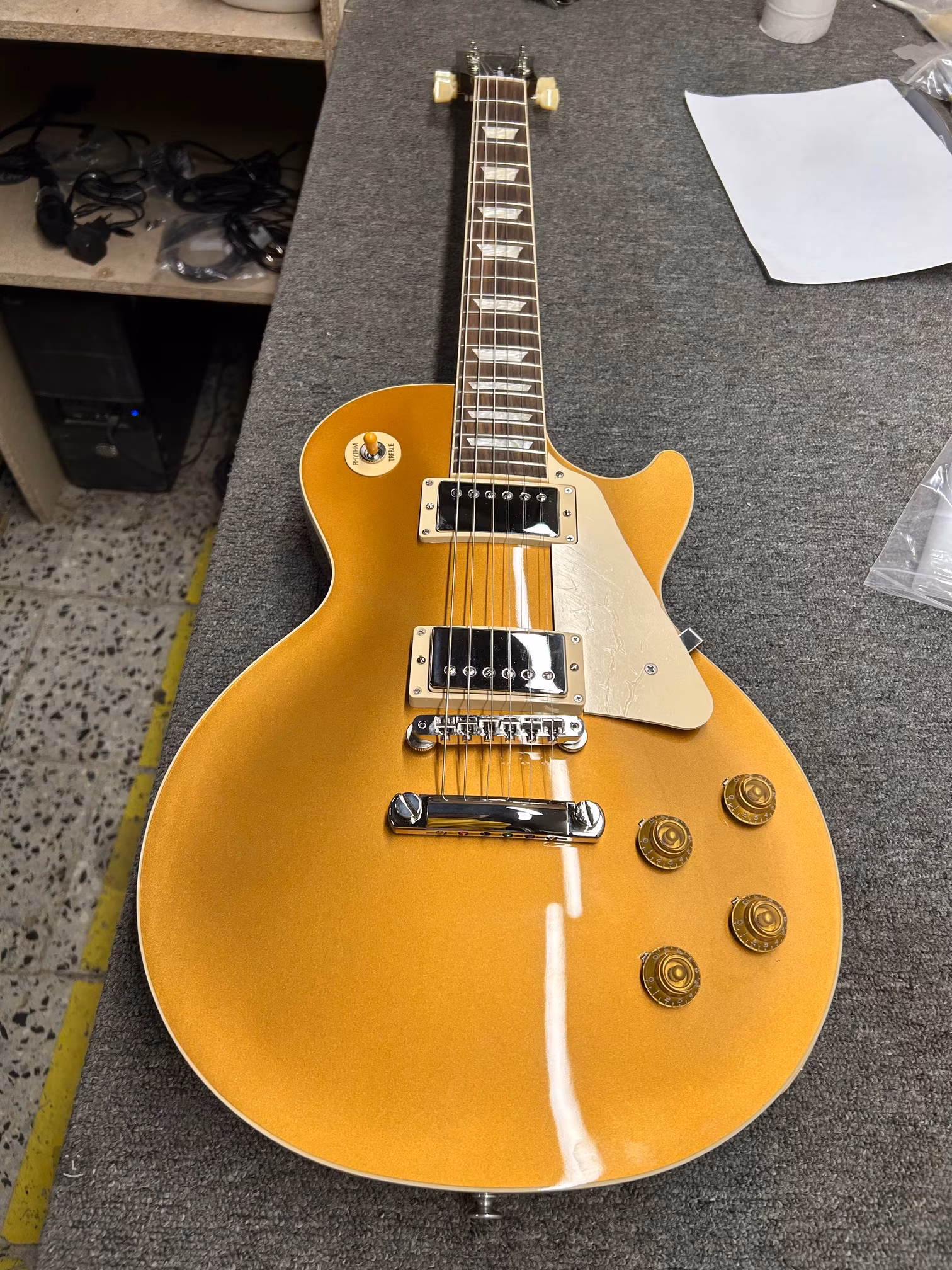 Stabilní ladění zaručuje uchycení strun přes kobylku ABR 1 Tune-O-Matic ve stop baru (struníku), na druhé straně přes nultý pražec z materiálu Graph Tech v ladících mechanikách Vintage Deluxe. Stylový design nástroje podtrhuje niklový hardware a světlý pickguard.