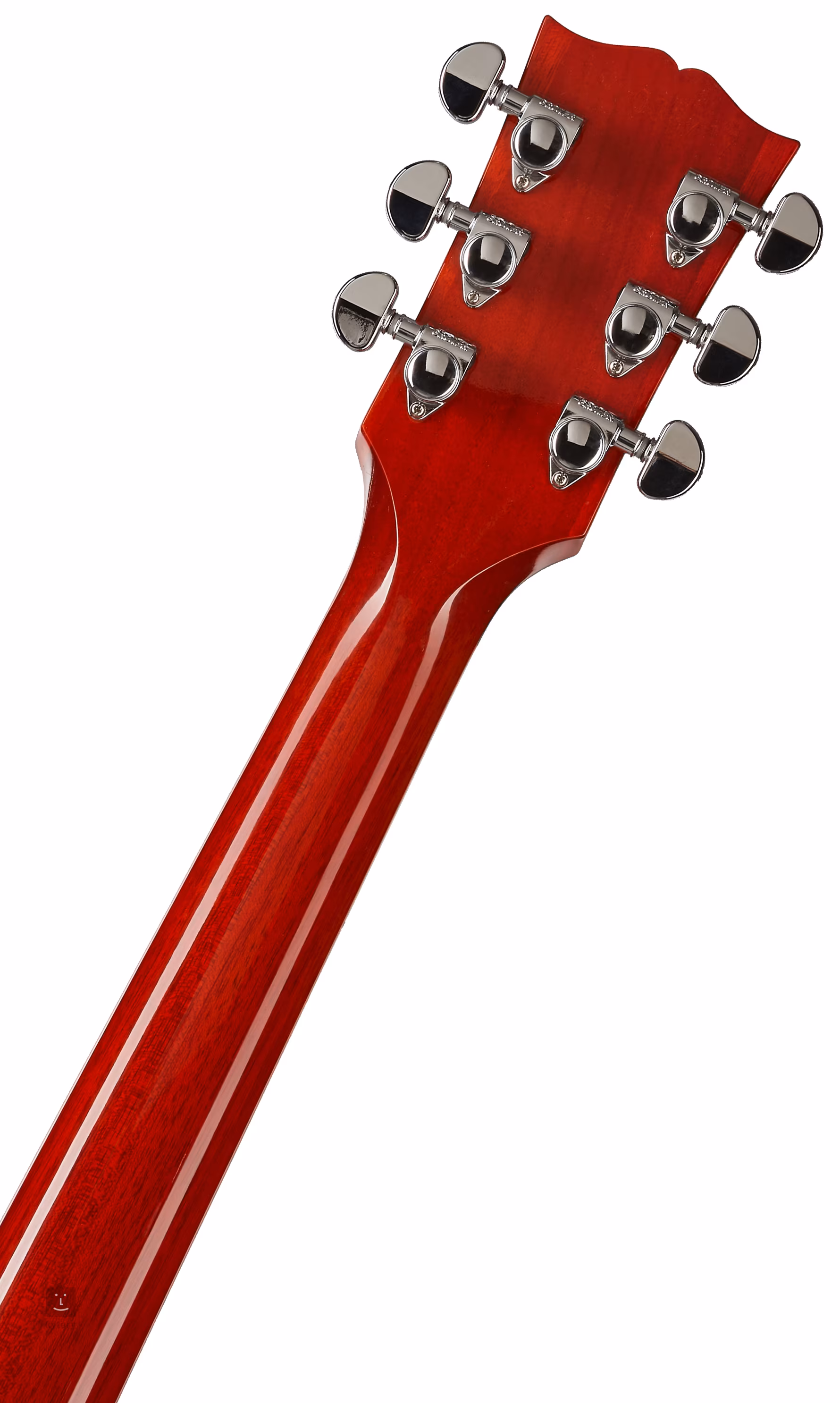Stabilní ladění zaručuje uchycení strun přes hliníkovou kobylku Nashville Tune-O-Matic ve stop baru (struníku), na druhé straně přes nultý grafitový pražec (tektoid) v ladících mechanikách Grover Rotomatics. Stylový design nástroje podtrhuje chromovaný hardware a černý pickguard.