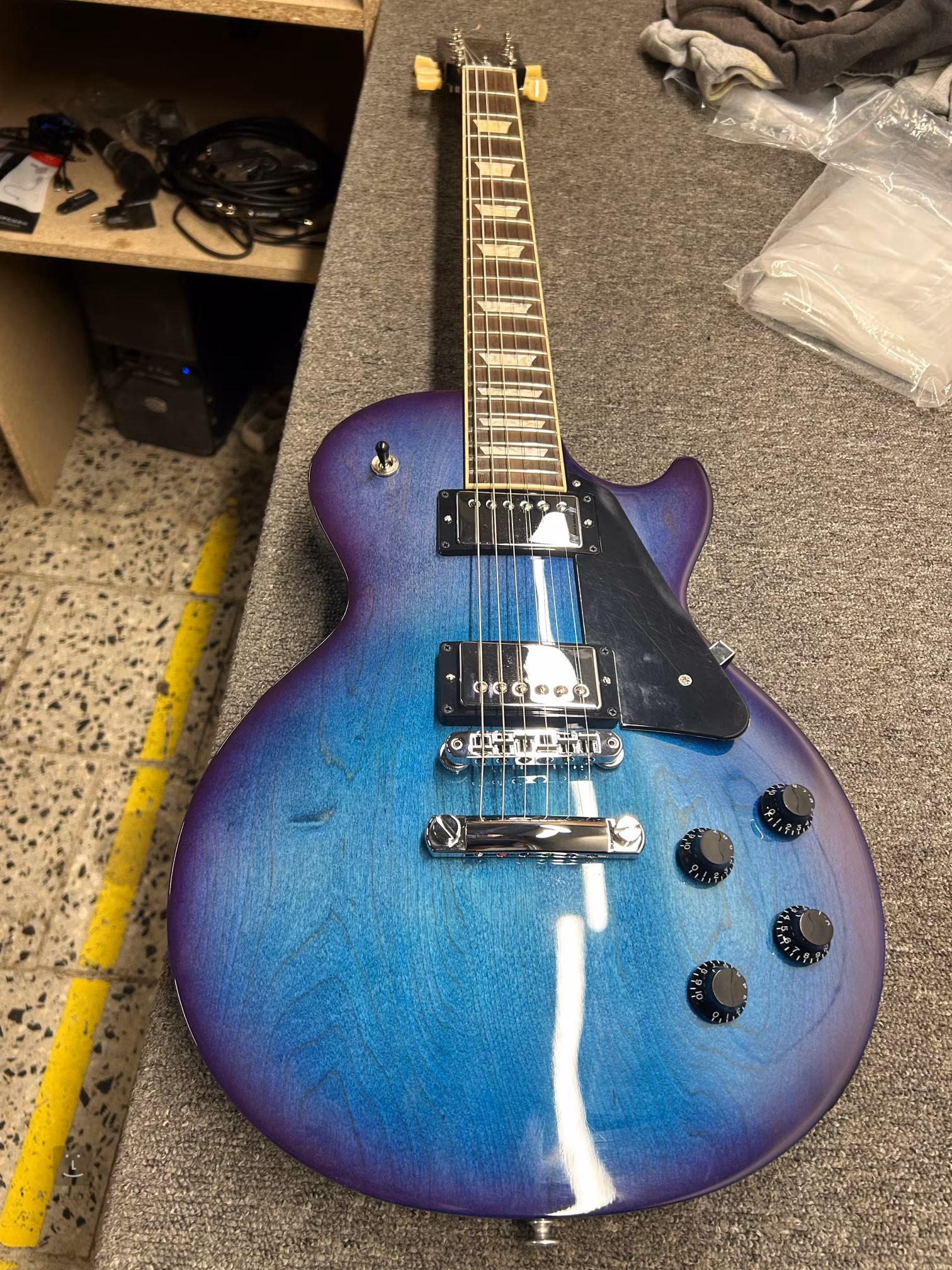 Mahagonové tělo kytary Les Paul Studio Blueberry Burst kryje vyřezaný javorový top. Díky rezonančním komorám těla (úpravě Ultra Modern Weight Relief) je nástroj podstatně lehčí než klasické LP modely, přitom si uchovává typický Les Paul zvuk a feel. Tenká povrchová úprava v podobě laku z nitrocelulózy umožňuje dřevu kytary dýchat a zlepšuje zvukové kvality nástroje.