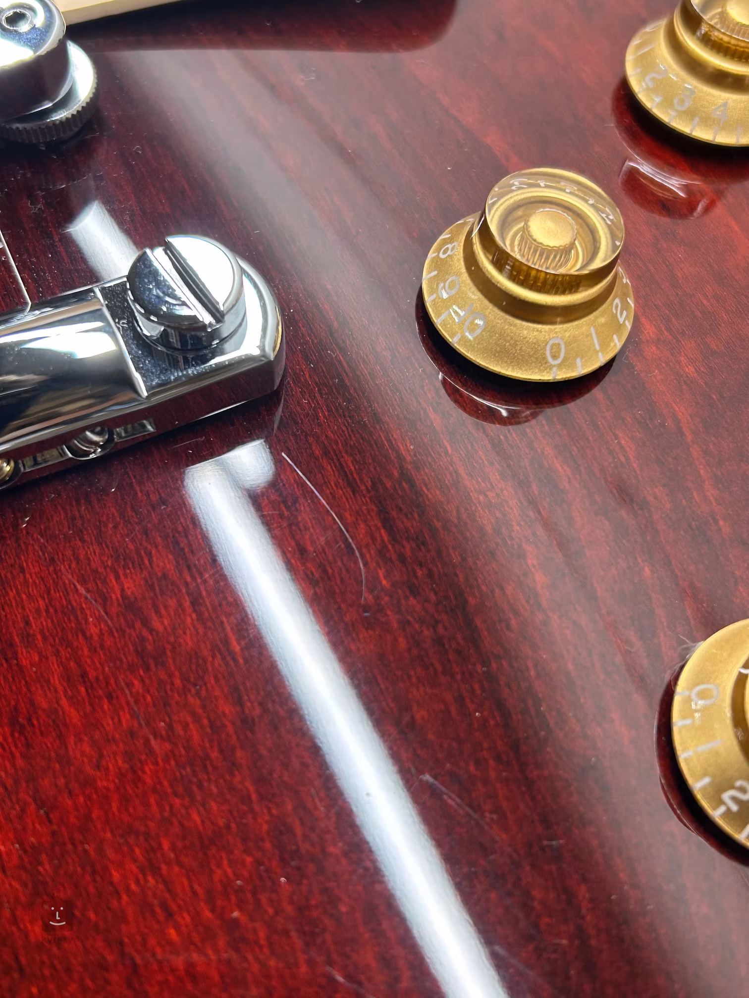 Stabilní ladění zaručuje uchycení strun v ladicích mechanikách Vintage Deluxe s kolíčky Keystone a přes hliníkovou kobylku Nashville Tune-O-Matic ve struníku. Stylový design nástroje podtrhuje chromovaný hardware a krémový pickguard.