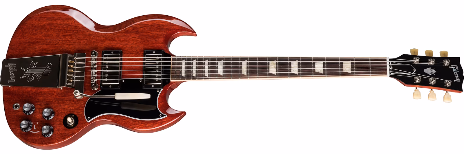 Elektrická kytara Gibson SG patří právem mezi nesmrtelné ikony rockové hudby. S jejím zvukem jsou spojena jména kytarových legend jako Carlos Santana, Pete Townshend a dalších velikánu rockové muziky. Kytary z řady SG Standard ’61 jsou ryzí poctou originálním modelu SG 1961. U tohoto modelu je přidanou hodnotou, jak už název naznačuje, originální Gibson design vibrata Maestro Vibrola.
