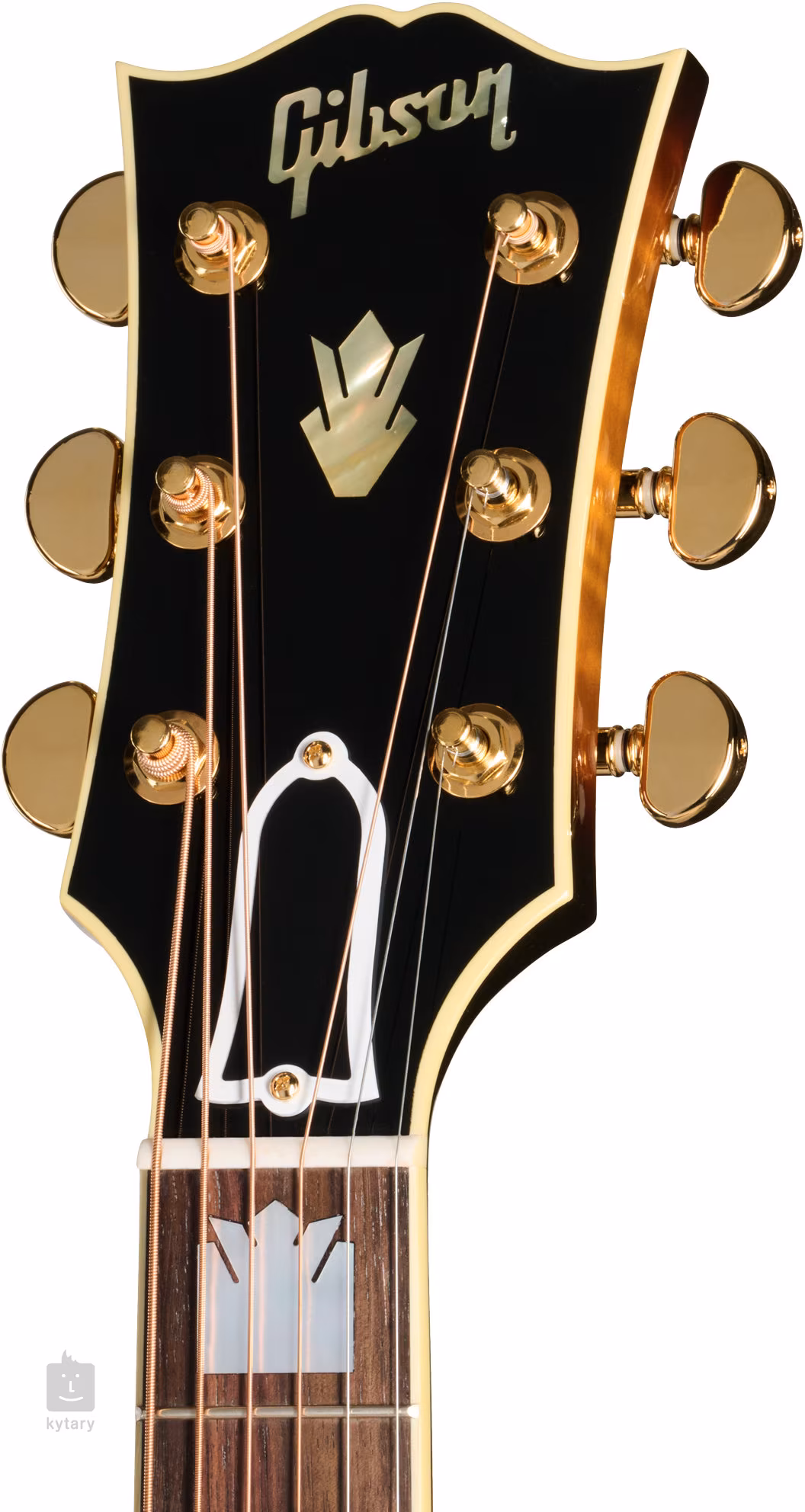 Struny jsou přes nultý a sedlový pražec z kosti uchyceny v kvalitních ladicích mechanikách Grover Rotomatic a palisandrové kobylce. Luxusní zpracování podtrhuje oboustranná obvodová lemovka těla, hmatníku a hlavy, výložka zadní desky, perleťové firemní logo a Gibson Crown inlay na hlavici kytary (Mother of Pearl), dekorativní SJ-200 pickguard s florálními motivy, perleťové vykládání “moustache” kobylky a hardware ve zlatém provedení.