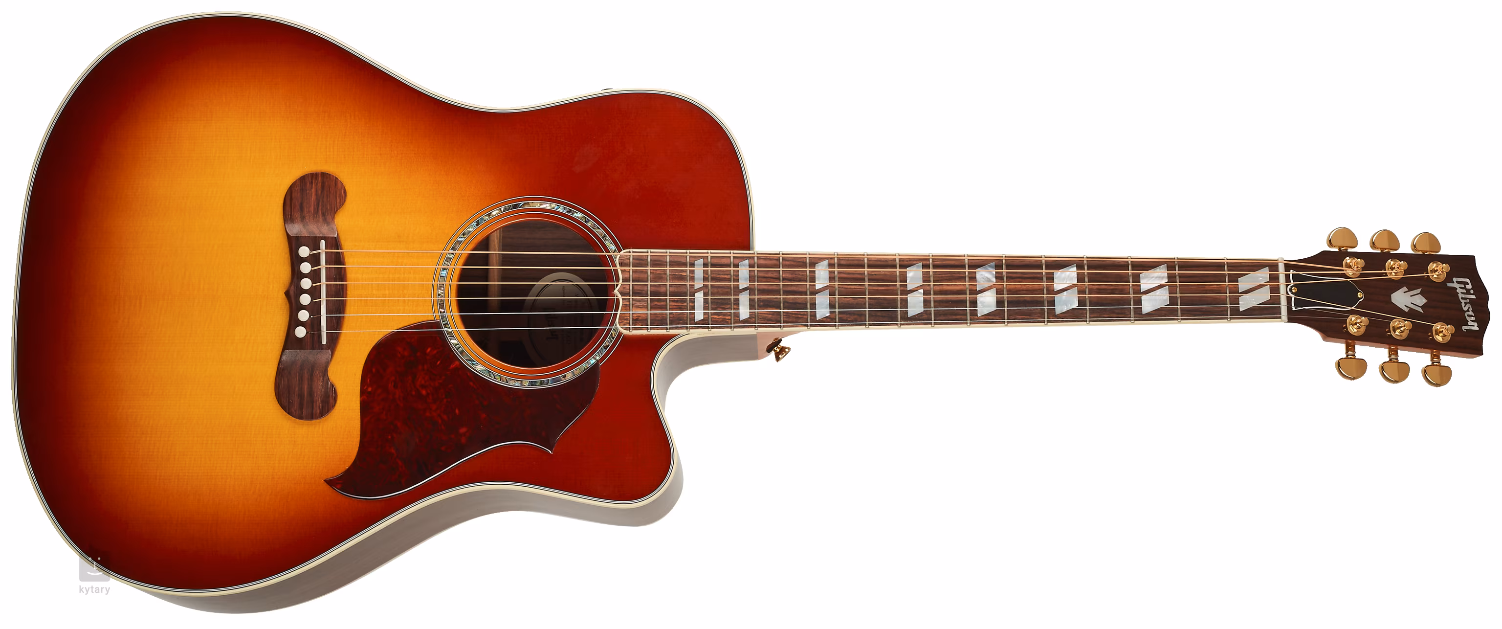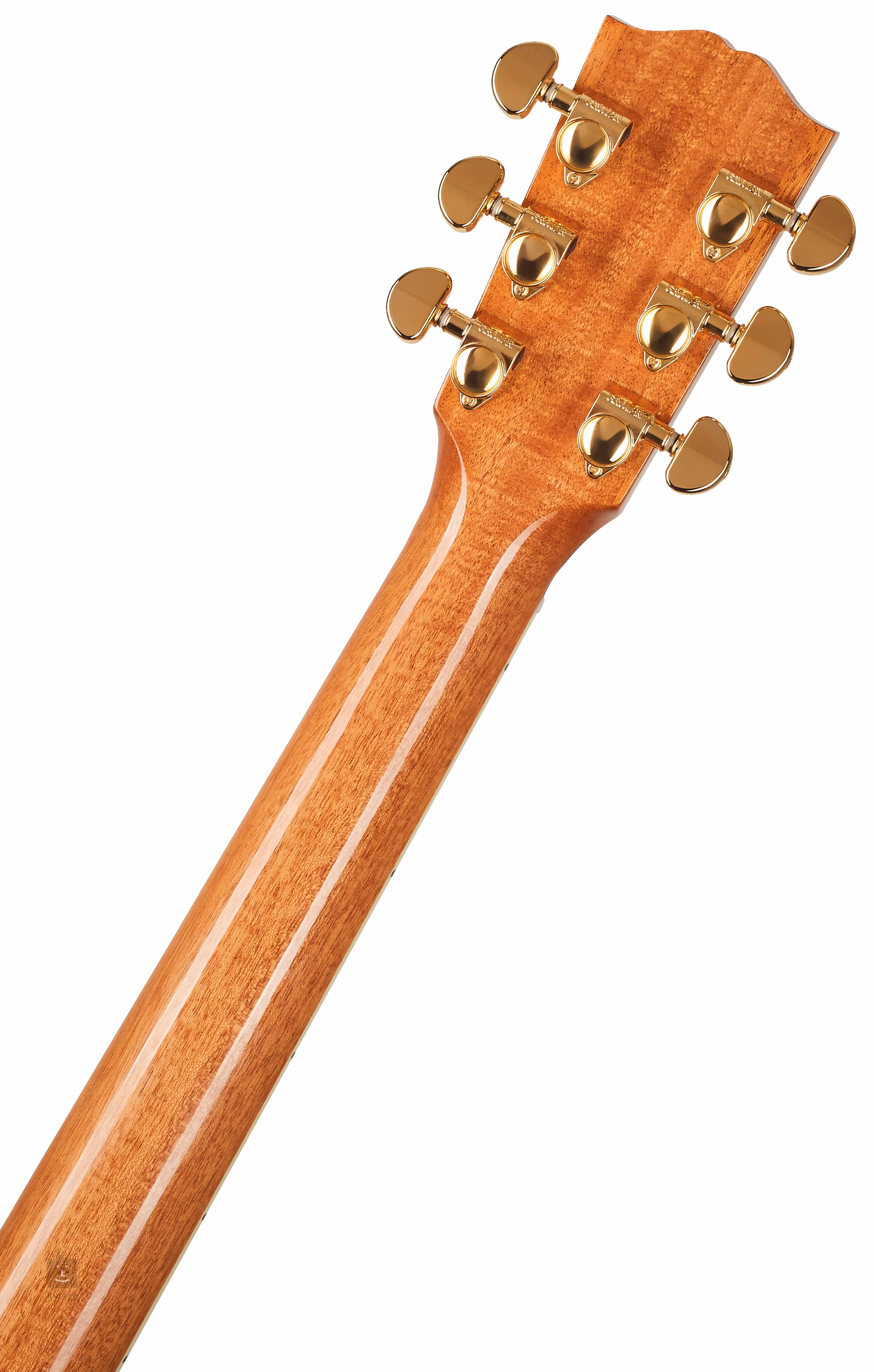 Struny jsou uchyceny přes sedlo a nultý pražec z materiálu TusQ v palisandrové kobylce a ladících mechanikách Grover Rotomatics. Stylový dojem podtrhuje hardware ve zlaté barvě, vícevrstvá lemovka, zdobná rozeta, pickguard z imitace želvoviny a logo na hlavici kytary.