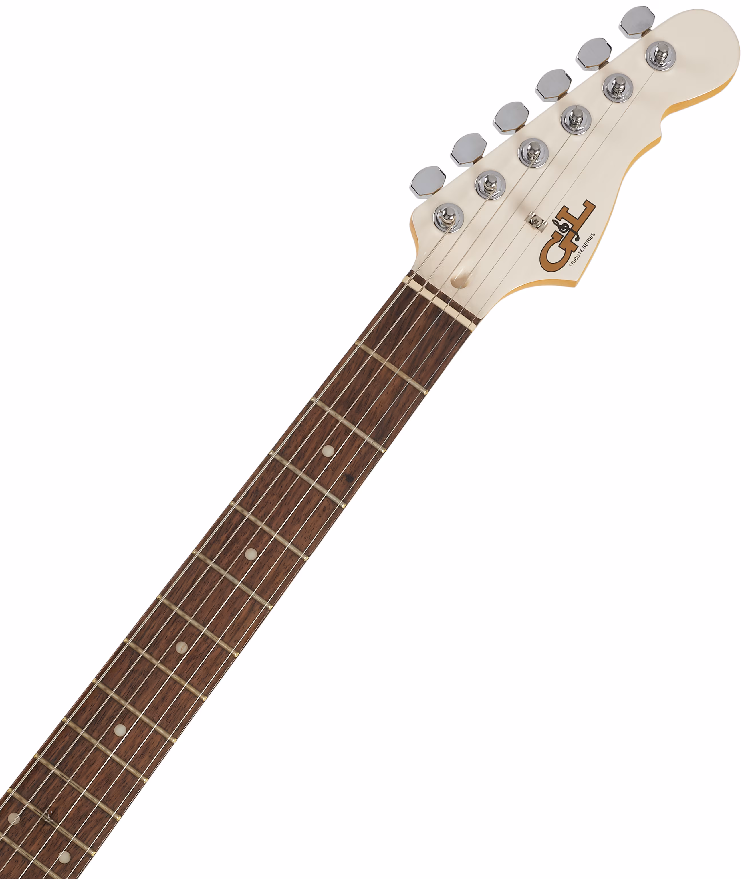 Design elektrických kytar G&L Comanche představuje poslední slovo Leo Fendera ke klasickému double-cut ST designu. Model Tribute Comanche Olympic White RW z cenově dostupnější řady Tribute nabízí topolové tělo, přišroubovaný javorový krk s příjemným profilem „Medium C“ a palisandrový hmatník osazený dvaadvaceti niklovými pražci velikosti Medium Jumbo.