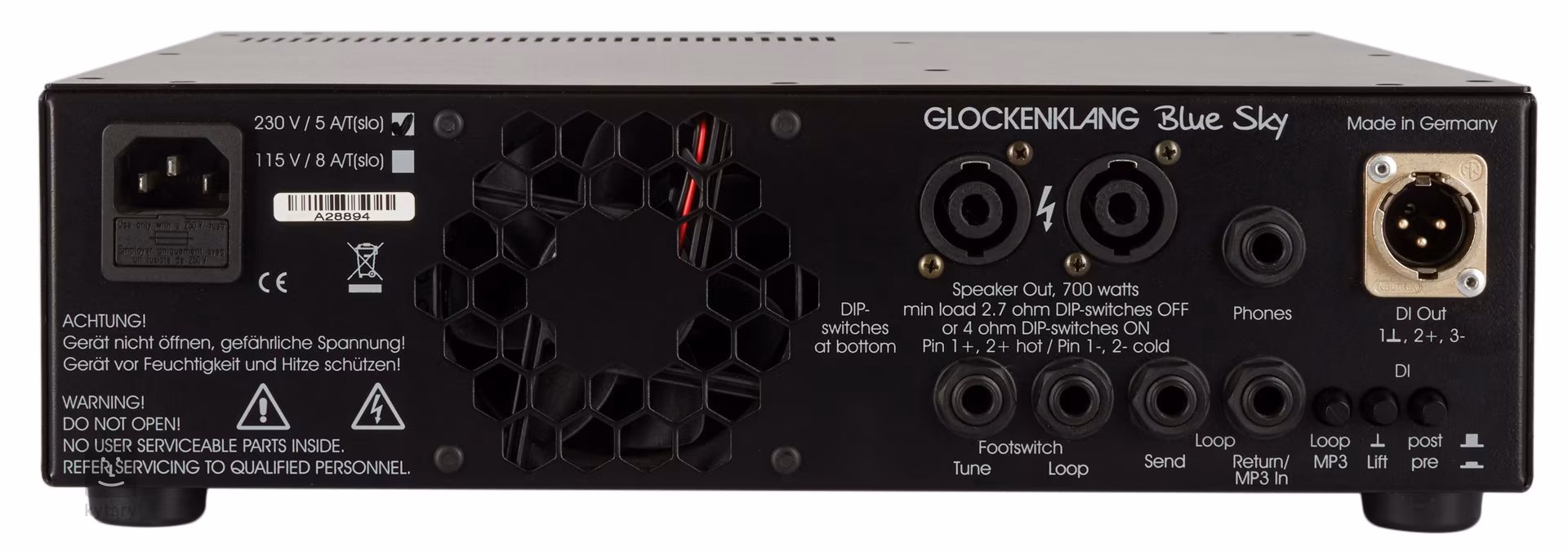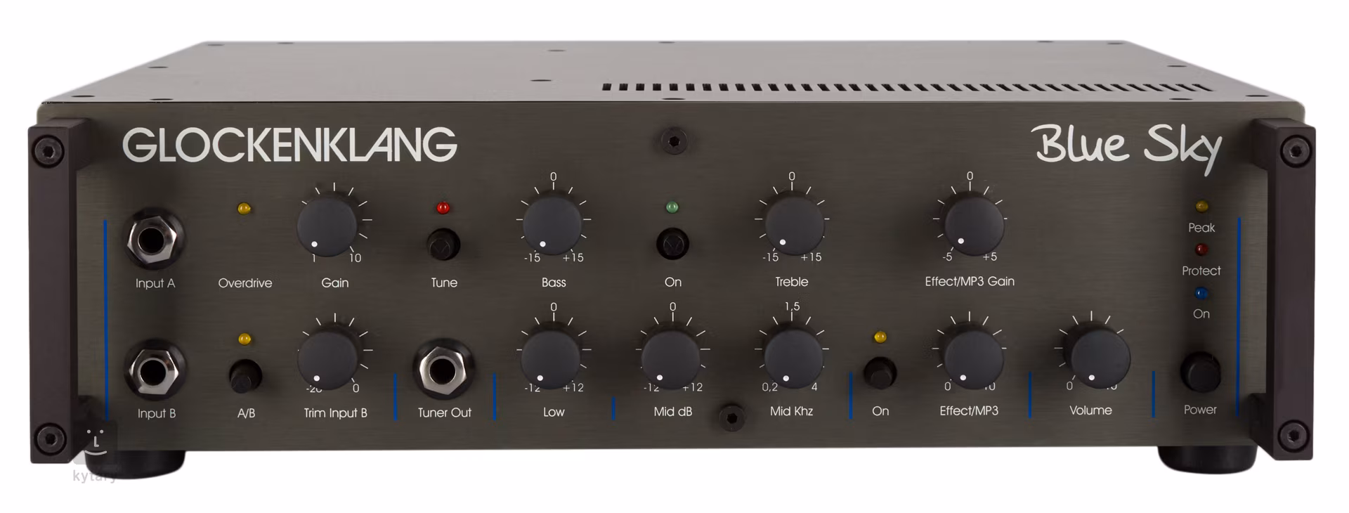 Blue Sky je robustní baskytarový zesilovač s vysoce výkonným zesilovačem třídy D, který disponuje teplým zvukem s dvěma přepínatelnými vstupy mezi klasickou elektrickou baskytarou a akustickým nástrojem s piezo snímačem. Vstupní signál si můžete upravit prostřednictvím čtyřpásmového ekvalizéru. Blue Sky dále disponuje efektovou smyčkou, kterou můžete využít i pro připojení MP3 přehrávače či mixpultu, výstupem pro ladičku, sluchátka a DI výstupem.