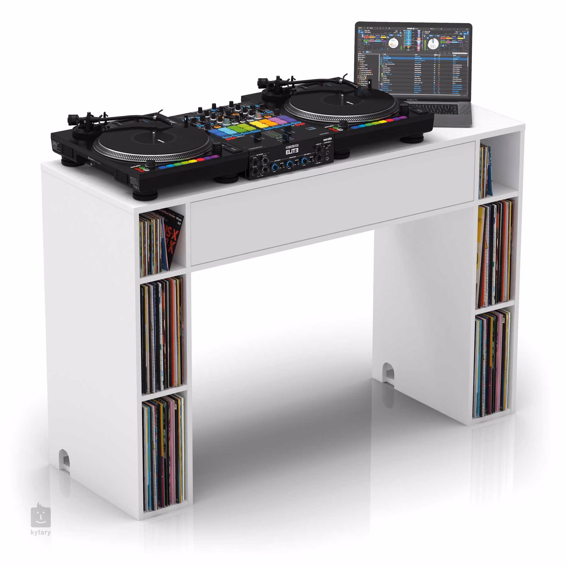 Glorious Modular Mix Station je stylový DJs stůl pro uskladnění více jak tří set 12" a 7" LP desek. Police jsou přizpůsobeny rozměrům hudebních nosičů a na horní desku můžete navíc umístit i velký DJ pult s laptopem. Přední deska je zakryta výklopným víkem, vkusně tak schováte vaší veškerou kabeláž a příslušenství. Modular Mix Station skvěle poslouží jako designový nábytek do moderně vybavené domácnosti nebo jako DJ stůl pro studio session nebo live perfromance. K dostání v odstínech bílé a černé.