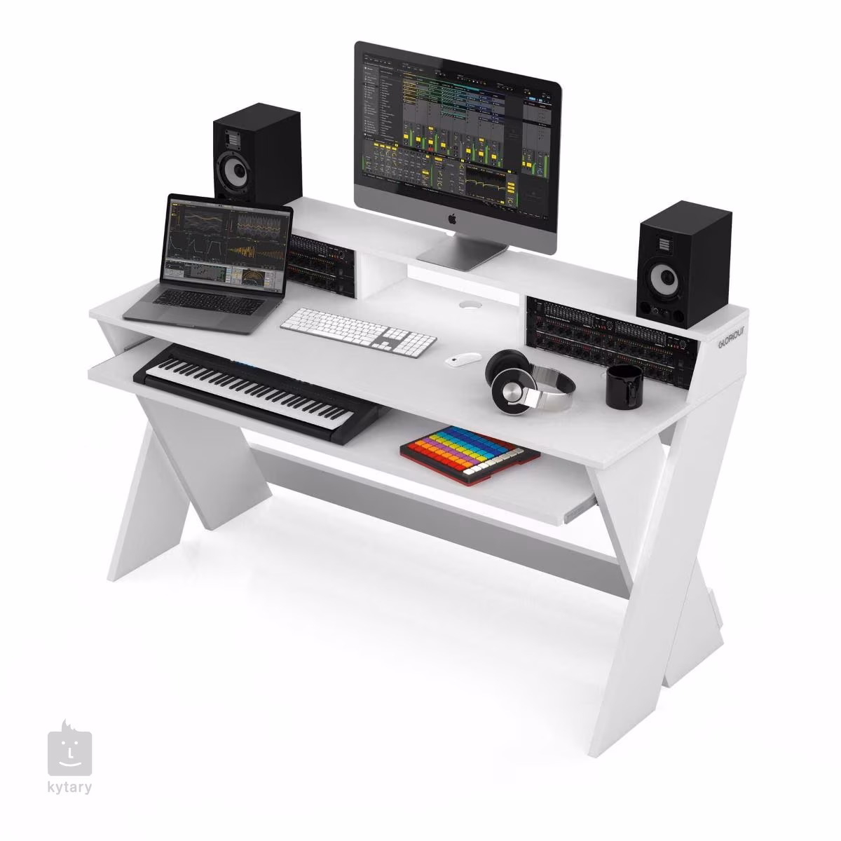 Stylový dřevěný stůl Sound Desk Pro je vhodný do nahrávacích studií a do interiérů, kde hudební producenti, skladatelé a DJ potřebují mít vše po ruce. Tříúrovňový stůl obsahuje vysouvací plochu pro klávesy, klávesnici a další zařízení. Hlavní deska disponuje rozsáhlou plochou, kam s přehledem umístíte laptop, sluchátka a hrnek s kávou. Podstavec pod monitor a reproduktory vám potom umožní skvělý monitoring vašich nahrávek a maximální přehled o jednotlivých stopách. Navíc podstavec obsahuje dvě zásuvky pro 19" rackové zařízení. Sound Desk Pro je k dostání ve třech barevných variantách, proto se skvěle hodí do vašeho moderně vybaveného nahrávacího studia.