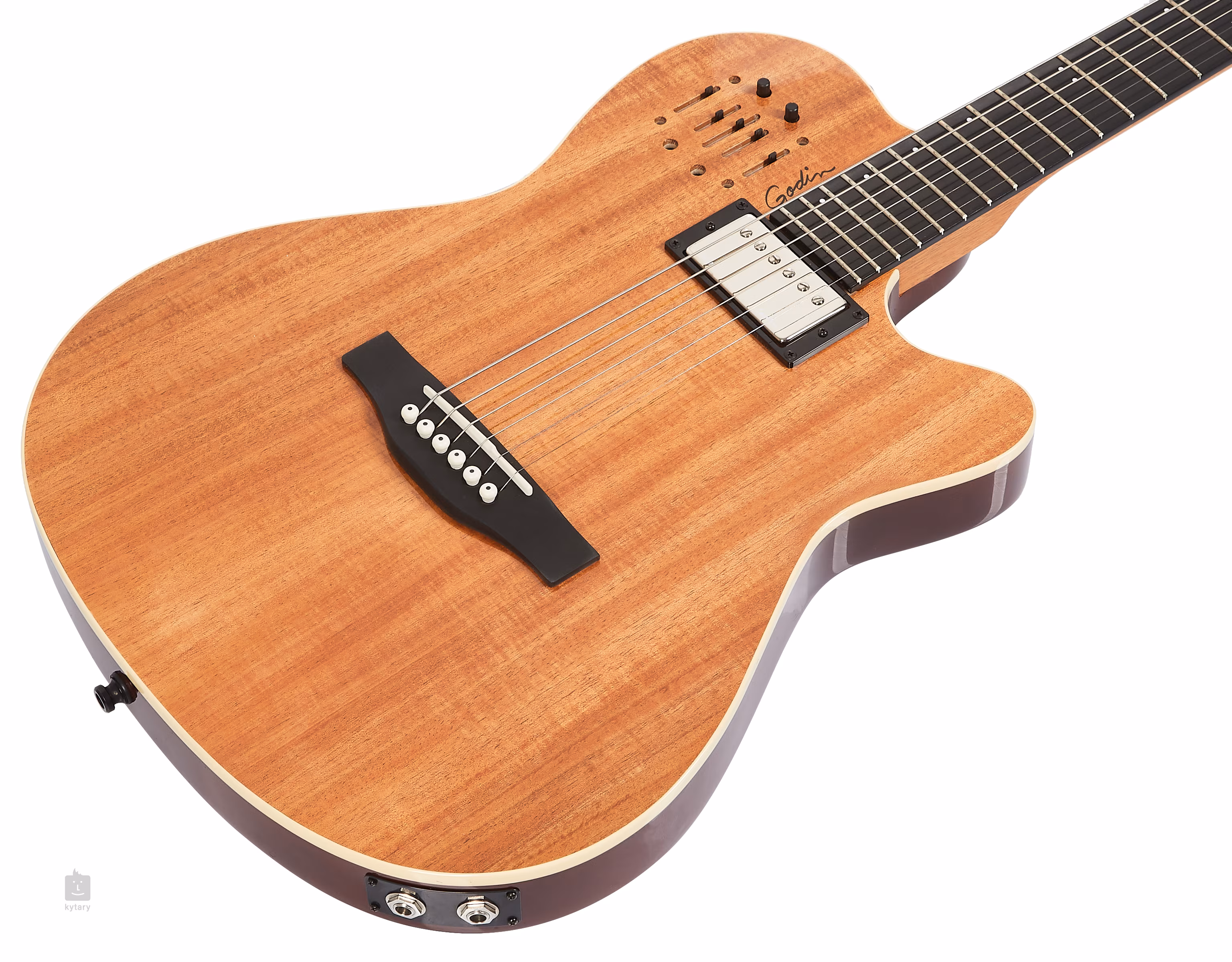 Godin zde použil dvojitý systém snímání zvuku. Nejprve jde o podkobylkový piezo snímač, který je doplněn speciálně vyvinutým předzesilovačem s ovladačem hlasitosti a 3pásmovým ekvalizérem. Druhou cestu představuje u krku umístěný humbucker označený jako Godin GHN1, u kterého lze též pracovat s hlasitostí a 2pásmovým ekvalizérem. Použity jsou i dva výstupy, jeden pro čistě elektrický signál a druhý pro akustický mix.