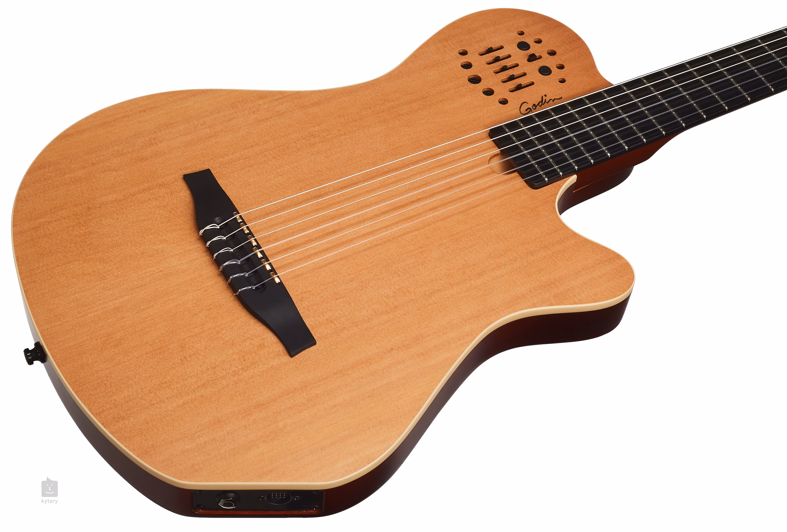 Série Multiac kanadské značky Godin nabízí atypické modely hybridních elektroakustických nástrojů s nevšedními zvukovými možnostmi a zajímavým designem. Konkrétně řada elektroakustických midi kytar Multiac ACS propojuje koncept klasické kytary s nylonovými strunami s celomasivní konstrukcí těla.