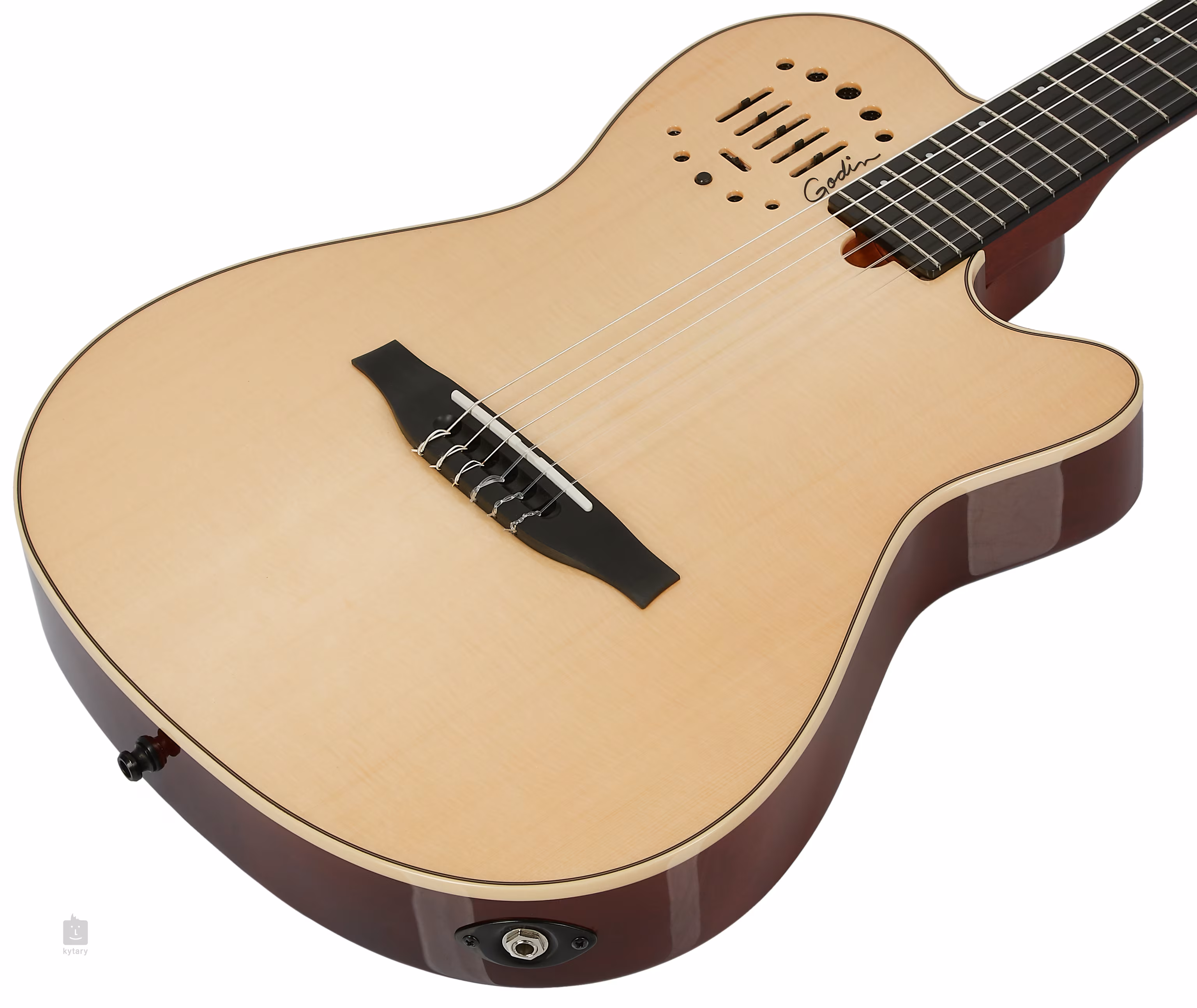 Godin zde použil speciální systém snímání zvuku. Jde o podkobylkový piezo snímač zkombinovaný se systémem Fishman Aura Mic Imaging, které jsou doplněny speciálně vyvinutým předzesilovačem s ovladačem hlasitosti a 3pásmovým ekvalizérem a možností míchat poměr mezi snímači. Mezi různými typy mikrofonu Aura se přepíná 4polohovým přepínačem.