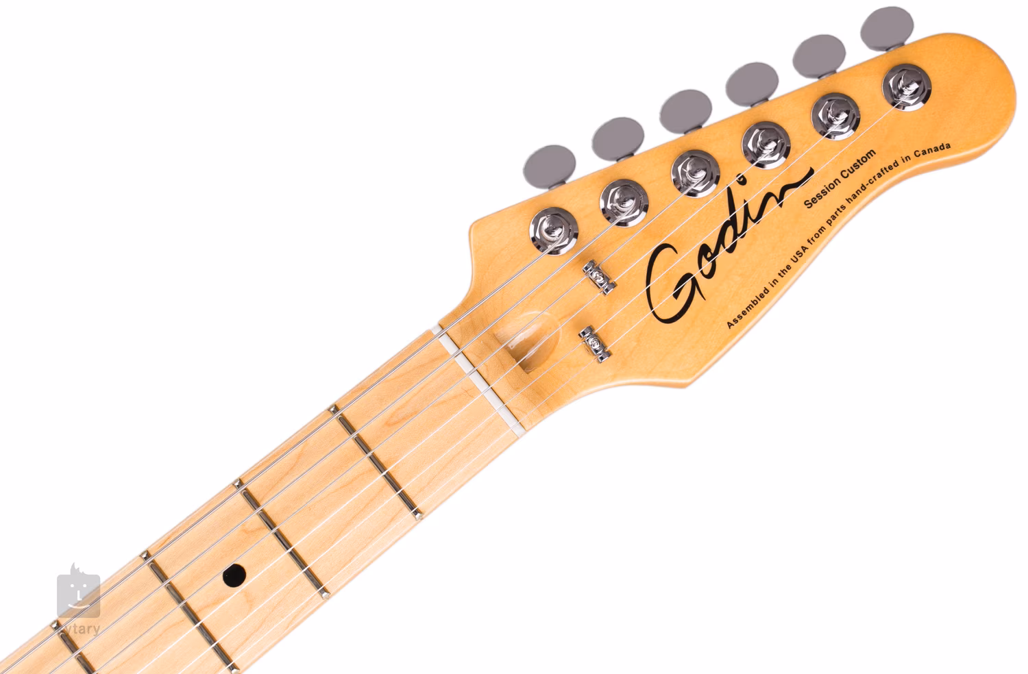 Struny jsou uchyceny v chromovaných ladících mechanikách a jednozvratném tremolu Godin Tru Loc. Pickguard chrání lak nástroje před poškrábáním při důraznější hře trsátkem. Vizuální dojem podtrhuje pěkná kresba mahagonového topu, světlá lemovka a firemní logo na hlavici nástroje. Kytara je dodávána v obalu (gig bag).