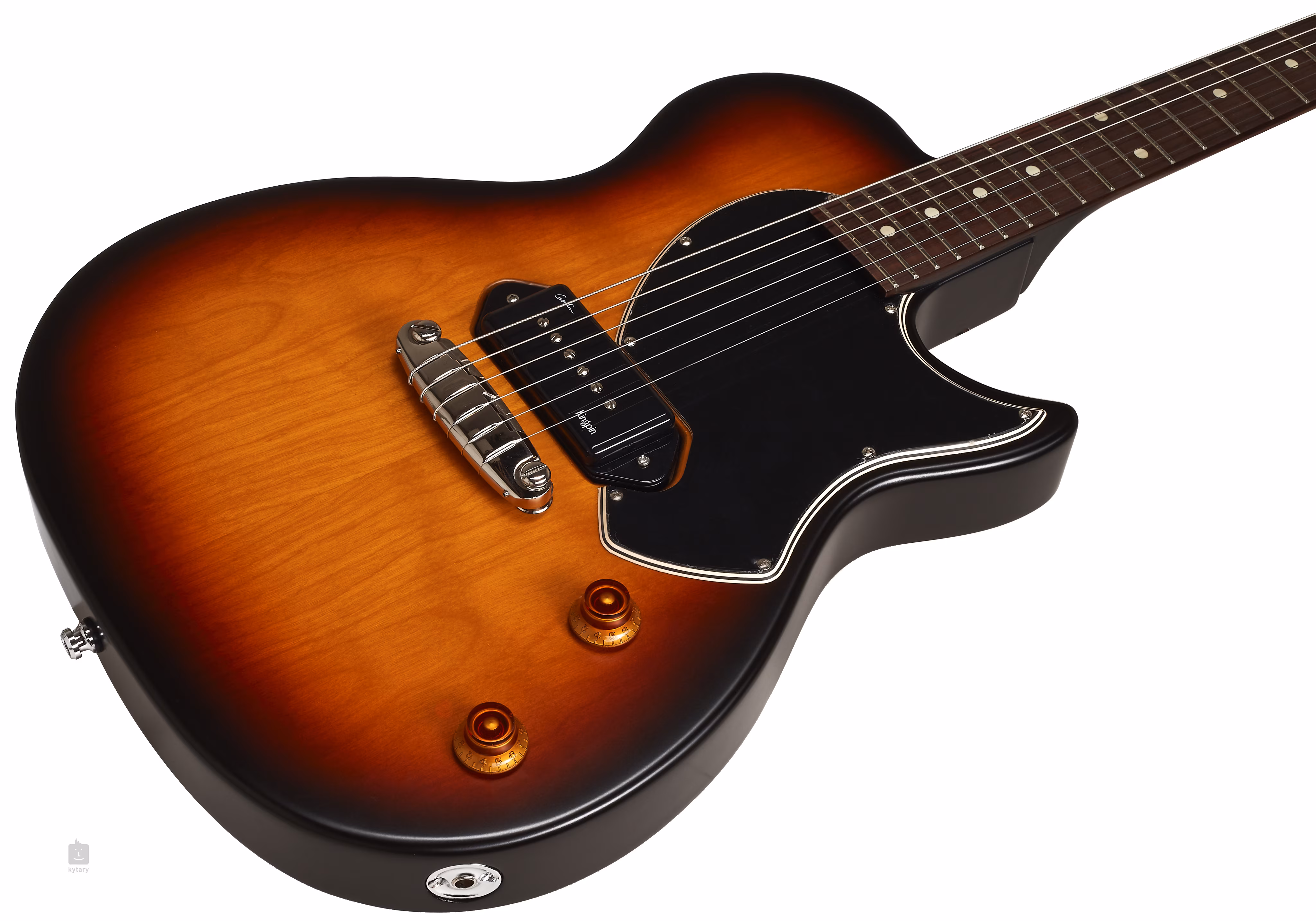 Tento konkrétní model je osazen jedním kobylkovým single-coil snímačem P-90 v Dog Ear designu. Ke zvukovým úpravám slouží potenciometry hlasitosti a tónové clony.