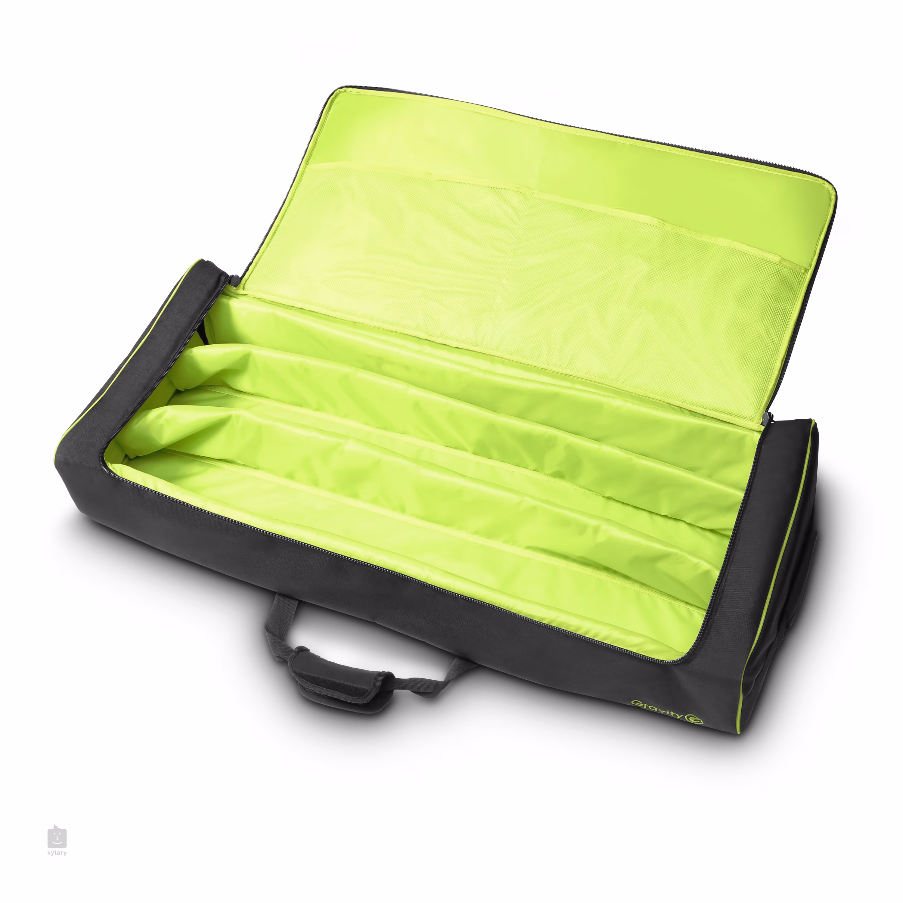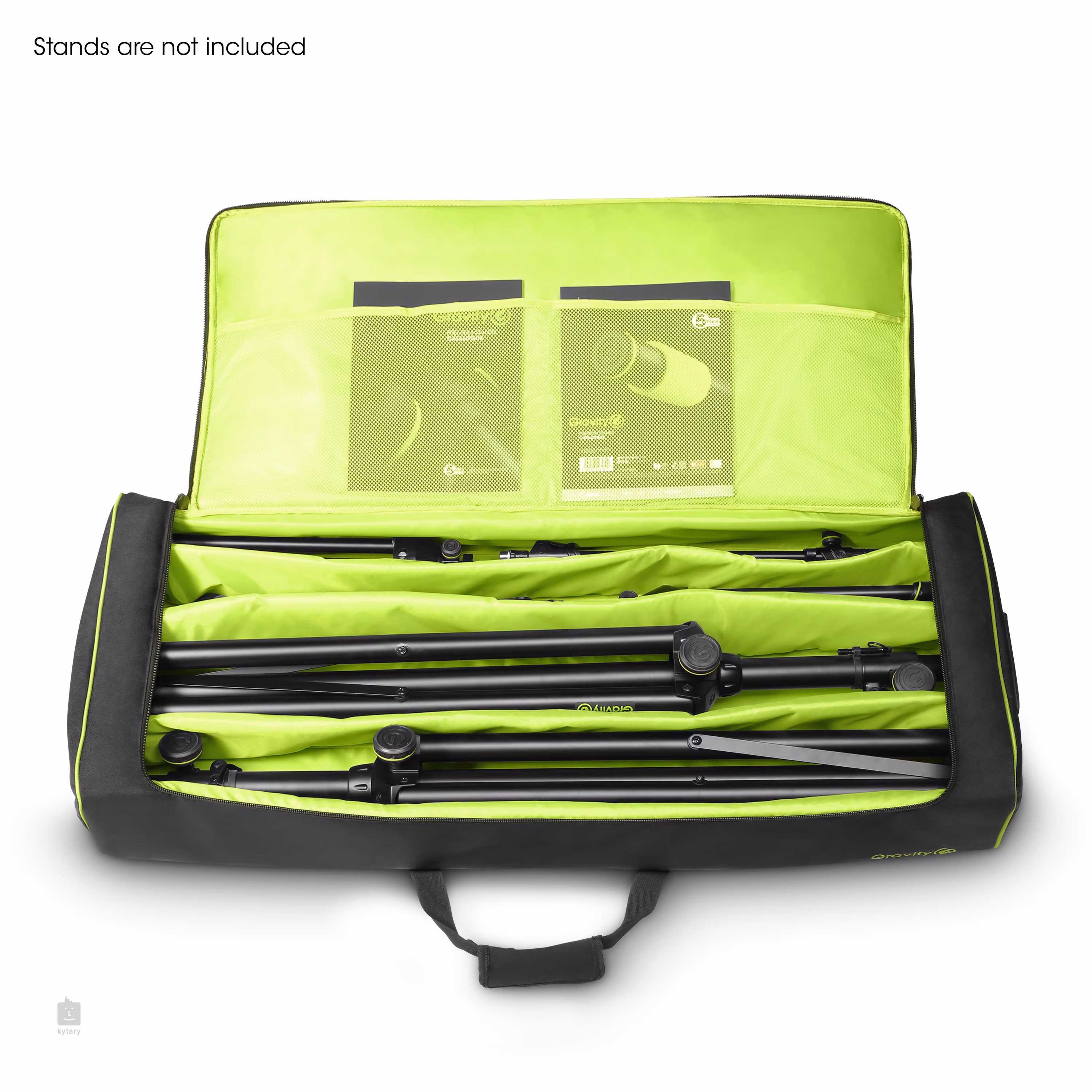 Přepravní obal pro dva mikrofonní a dva reproboxové stojany. Obal je nepromokavý, vyroben z 10 mm vrstvy 600D nylonu, vpředu naleznete prostornou kapsu pro mikrofony, kabely a další příslušenství. Každý stojan má svojí vyhrazenou přihrádku, nemůže se tak stát, že by se při převozu o sebe stojany otloukly. Obal můžete nést v ruce nebo přes rameno pomocí popruhu, který je součástí balení.
