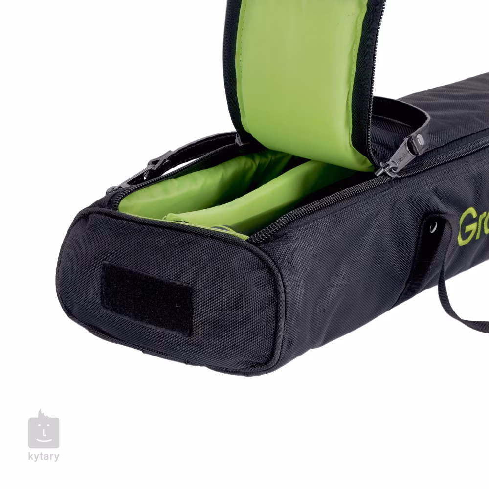Přepravní obal pro dva kompaktní stojany pro reproboxy Traveler SP 5112 zhotovený z vodovzdorného 600D nylonu, 15 mm silným polstrováním, zesílením v místech největších zátěže, ergonomický držadlem a dvojitým zipem.
