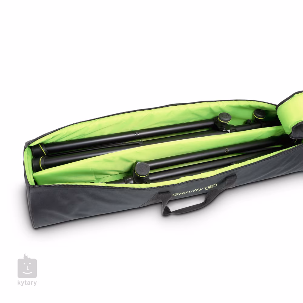 Odolný obal s patnáctimilimetrovým polstrováním pro dva stojany na reprobox značky Gravity. Obal je vyroben z 600D nylonu, který je voděodolný a snadno se čistí. Vnitřní přihrádka od sebe stojany odděluje a zabraňuje tak jejich poškrábání.